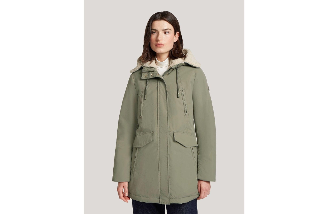 Reset Elli 6640 vetiver. Dit rechtvallende model heeft een capuchon, lange mouwen en sluit door middel van een tweezijdige rits. Deze licht groene winterjas van Reset is uitgevoerd in een gewatteerd materiaal en beschikt over verschillende zakken. Dit model heeft een capuchon gevoerd met synthetisch teddy.