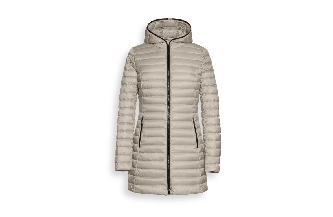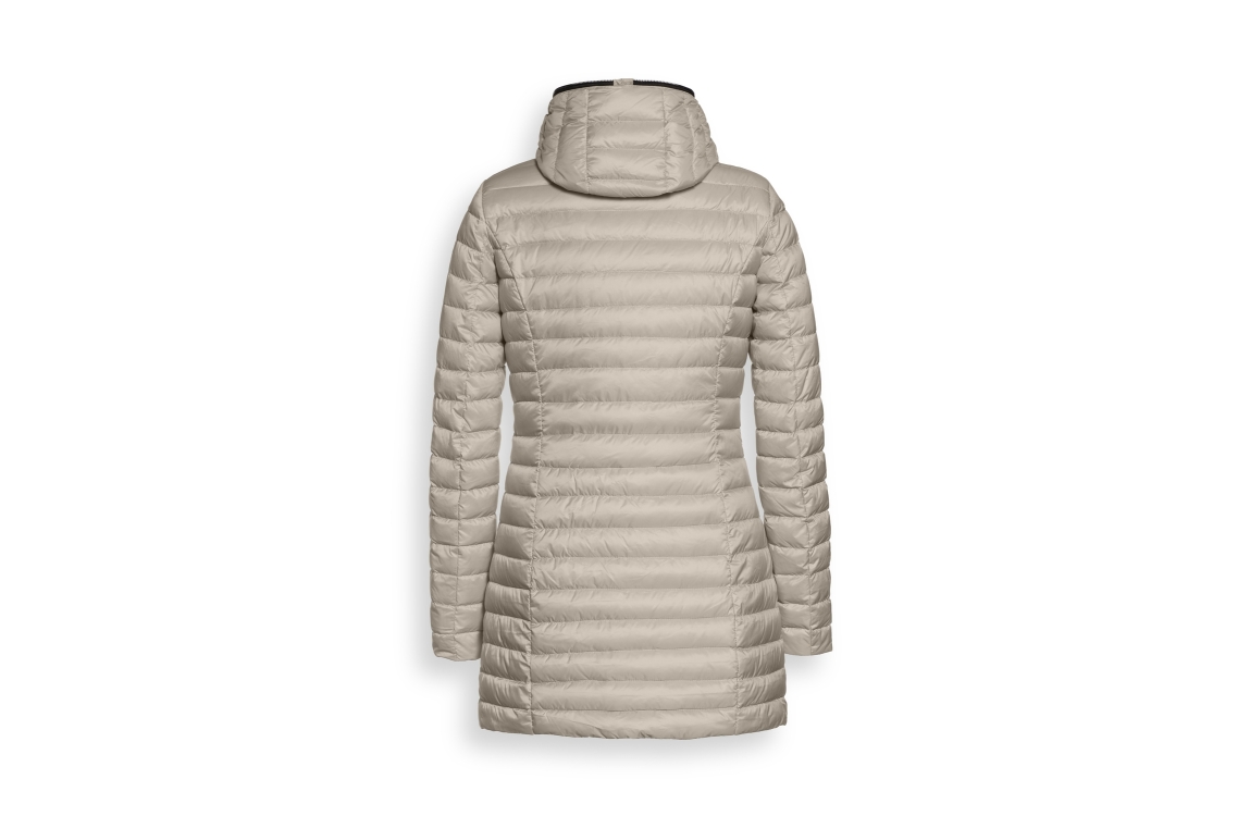 Reset jas Kyoto LR02732251. Dit halflange model is voorzien van een capuchon en heeft lange mouwen. Deze beige licht gewatteerde jas van Reset sluit door middel van een dubbele rits en beschikt over twee ritszakken. Dit model is afgewerkt met een merkembleem op de linkermouw van de drager.