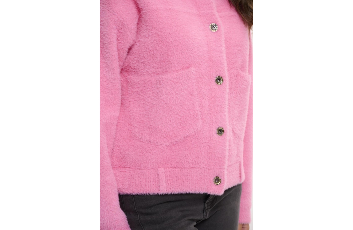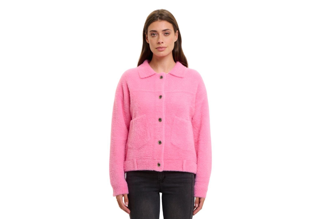 Rino & Pelle jasje Boxy Bubbly.5002423. Dit rechtvallend jasje heeft een kraag en lange mouwen. Deze bright pink kleurige vest van Rino & Pelle sluit aan de voorzijde door middel van knopen en is voorzien van twee opgestikte zakken. De achterzijde is bewerkt met knopen aan de onderzijde en dit model is gemaakt in een faux fur stof.