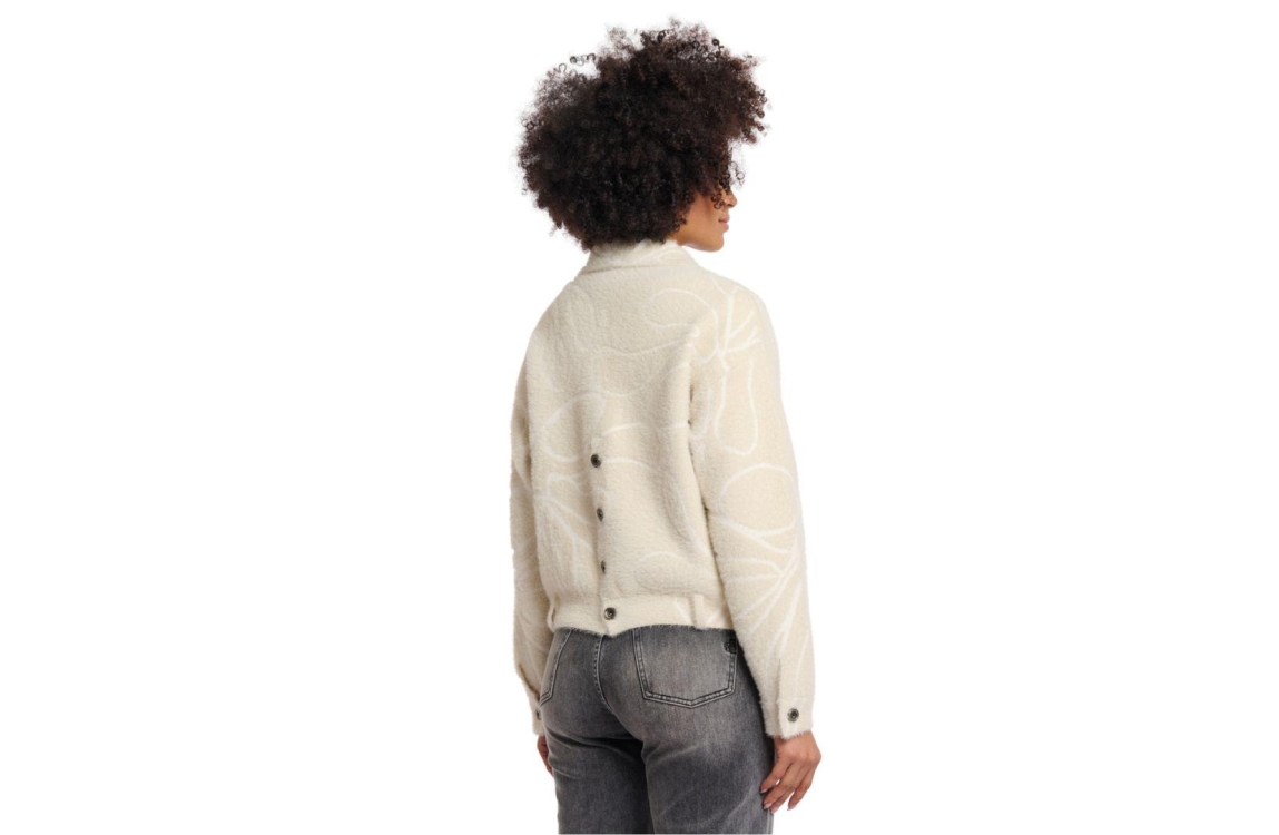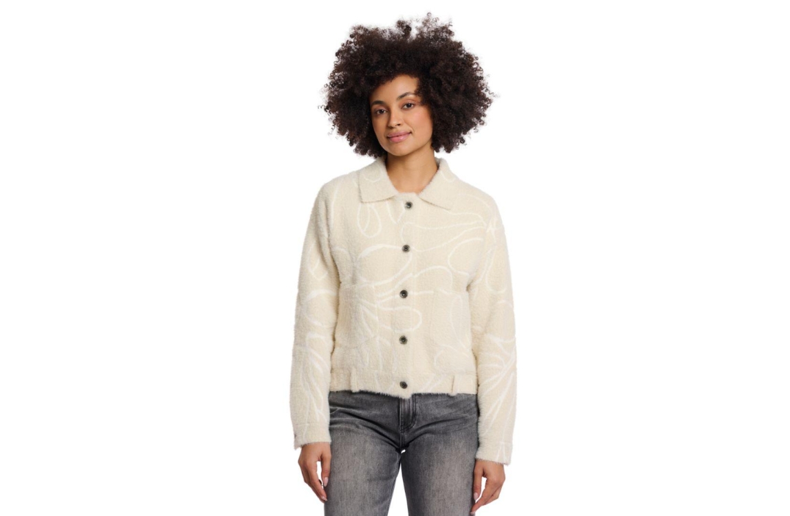 Rino en Pelle jasje Bubbly 5012511. Dit rechtvallend model heeft een omgeslagen kraag en lange mouwen. Deze off-white jas van Rino en Pelle sluit aan de voorzijde door middel van knopen en is voorzien van twee opgestikte steekzakken. Het model is all-over bewerkt met een grafische print en heeft ceintuurlussen in de zoom.