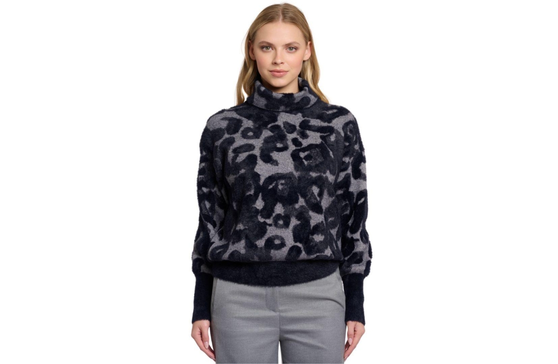 Rino en Pelle Boxy turtleneck sweater 10970 grey black leoRino en Pelle Boxy turtleneck sweater 10970 grey black leo