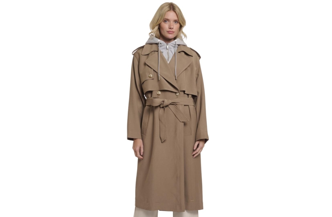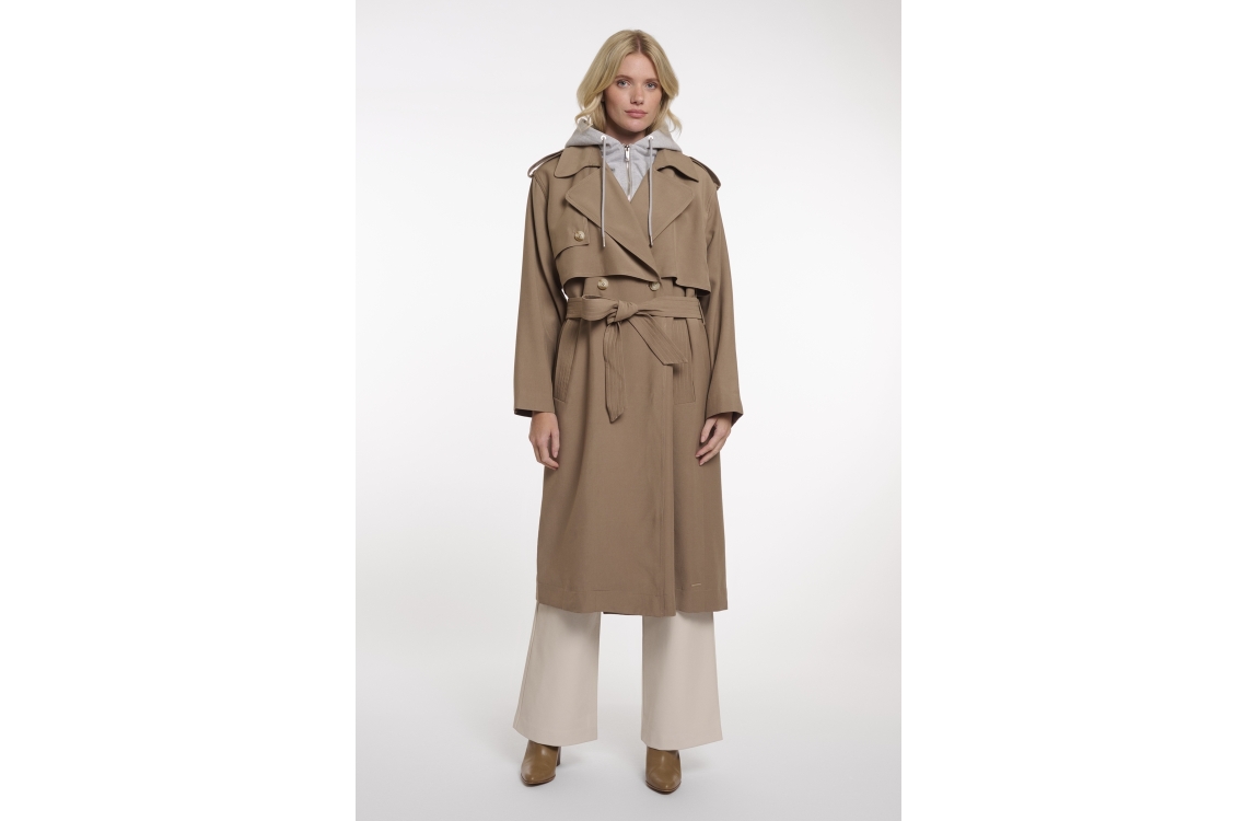 Rino en Pelle Double breasted trenchcoat Kae.7002621. Dit rechtvallend model heeft een v-hals en afneembare capuchon, lange mouwen en sluit door middel van knopen en een ceintuur. Deze bruine trenchcoat van Rino en Pelle is voorzien van een uitneembare capuchon met rits. Dit model beschikt over schuine steekzakken en een uitstaande achterzijde.