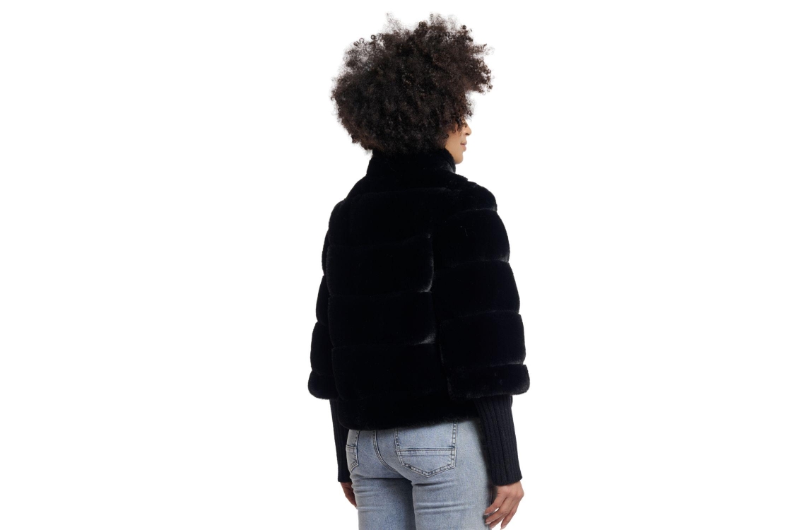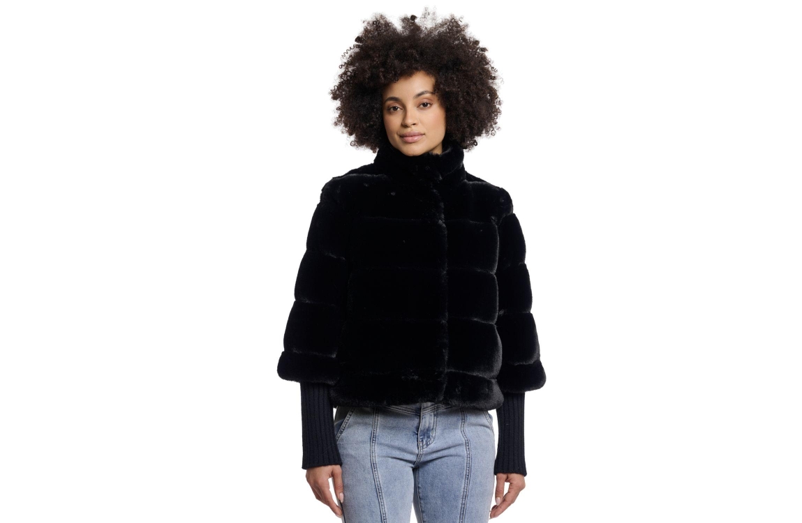 Rino en Pelle Faux fur jacket with knitted sleeves 9900 blackRino en Pelle Faux fur jacket with knitted sleeves 9900 black