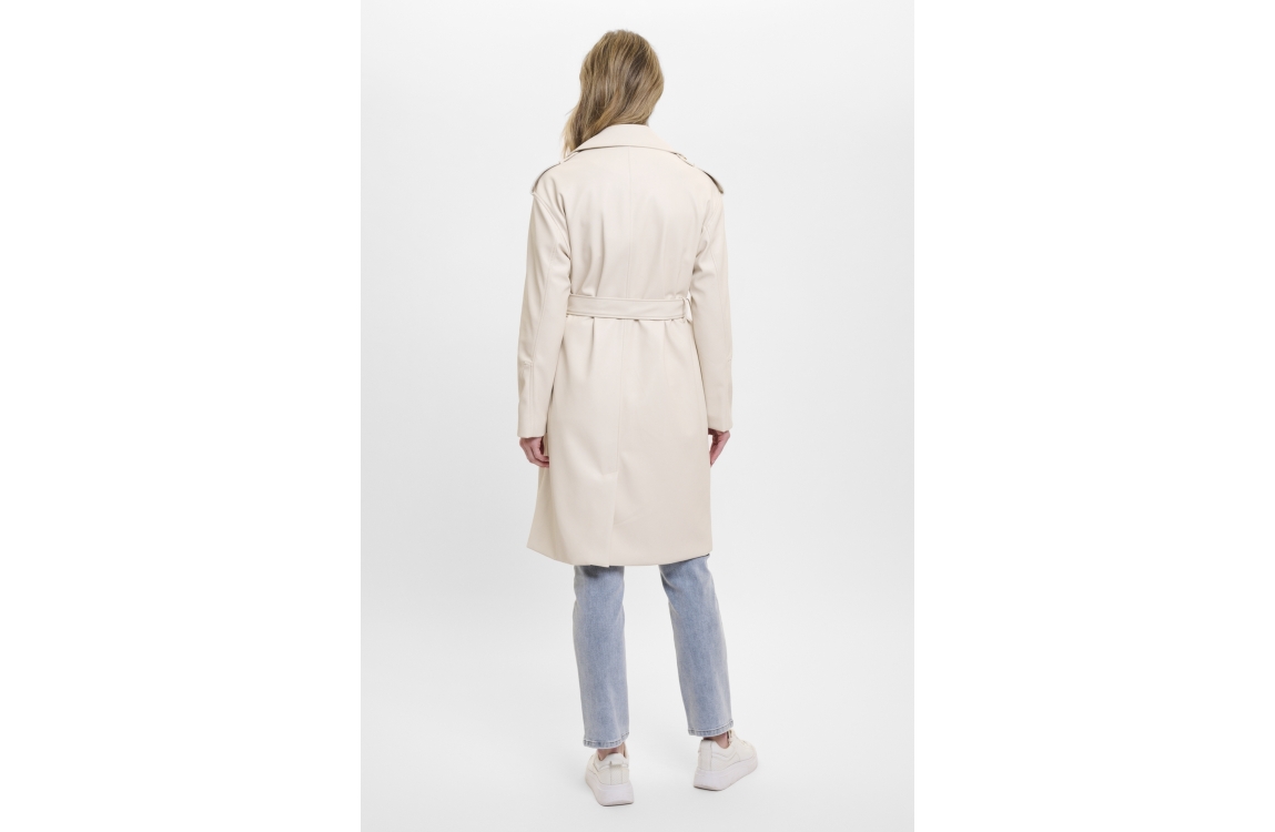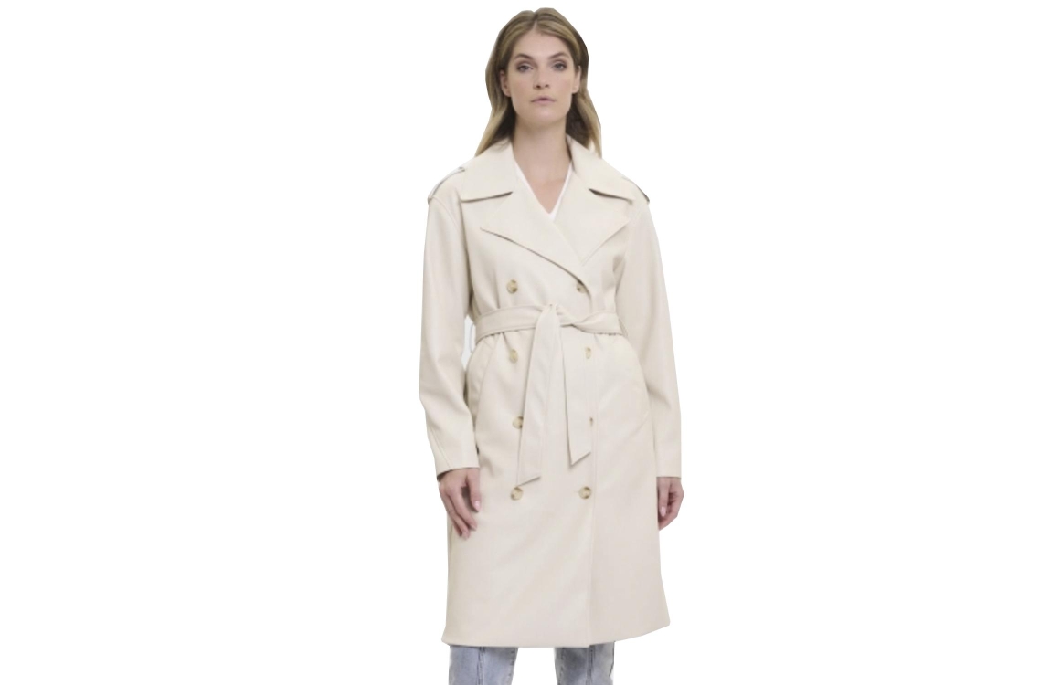 Rino & Pelle trenchcoat Broos.7502521.Dit rechtvallende model jas sluit door middel van knopen en heeft lange mouwen. Deze zandkleurige faux leather Rino & Pelle jas beschikt over steekzakken en heeft een strikceintuur.