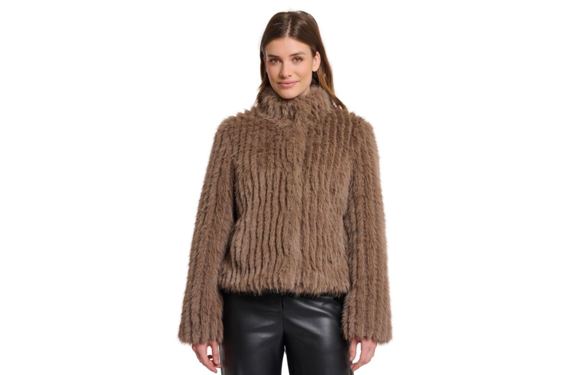 Rino en Pelle jas Faith 7002511. Dit rechtvallende model heeft een opstaande kraag en lange mouwen. Deze bruine (toffee) jas van Rino en Pelle sluit aan de voorzijde door middel van drukknopen en is uitgevoerd in fluffy stof. Het model beschikt over twee steekzakken en is gevoerd.
