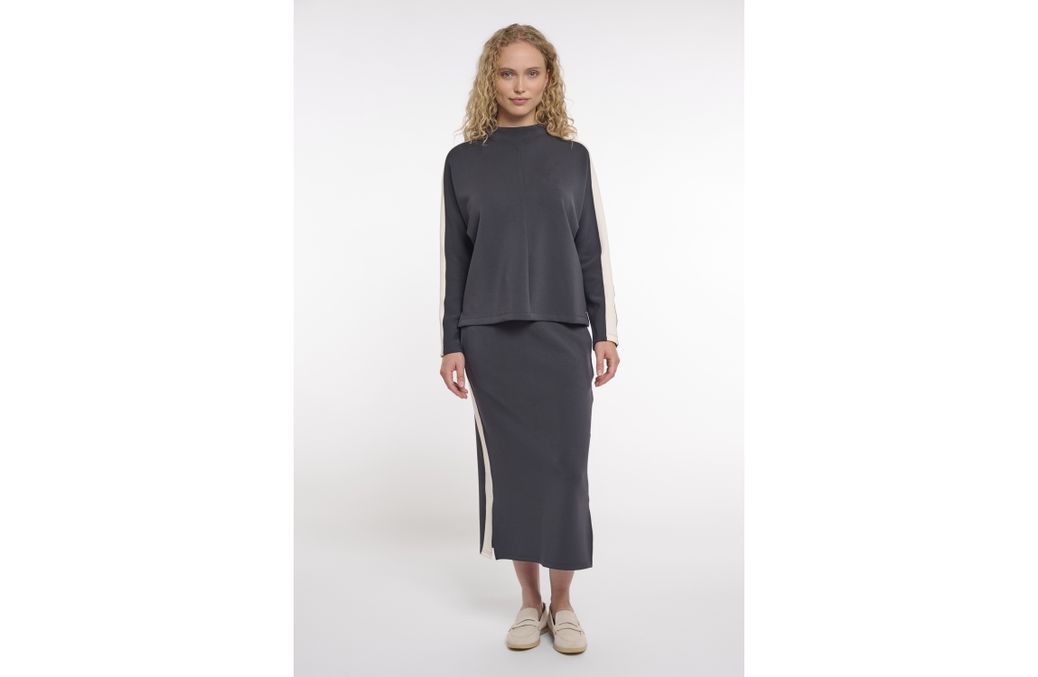 Rino en Pelle Pullover Vaya 7002621. Dit rechtvallend model heeft een ronde hals en lange mouwen. Deze blauw/grijze pullover van Rino en Pelle is voorzien van een witte bies en kleine splitjes aan de zijkant.