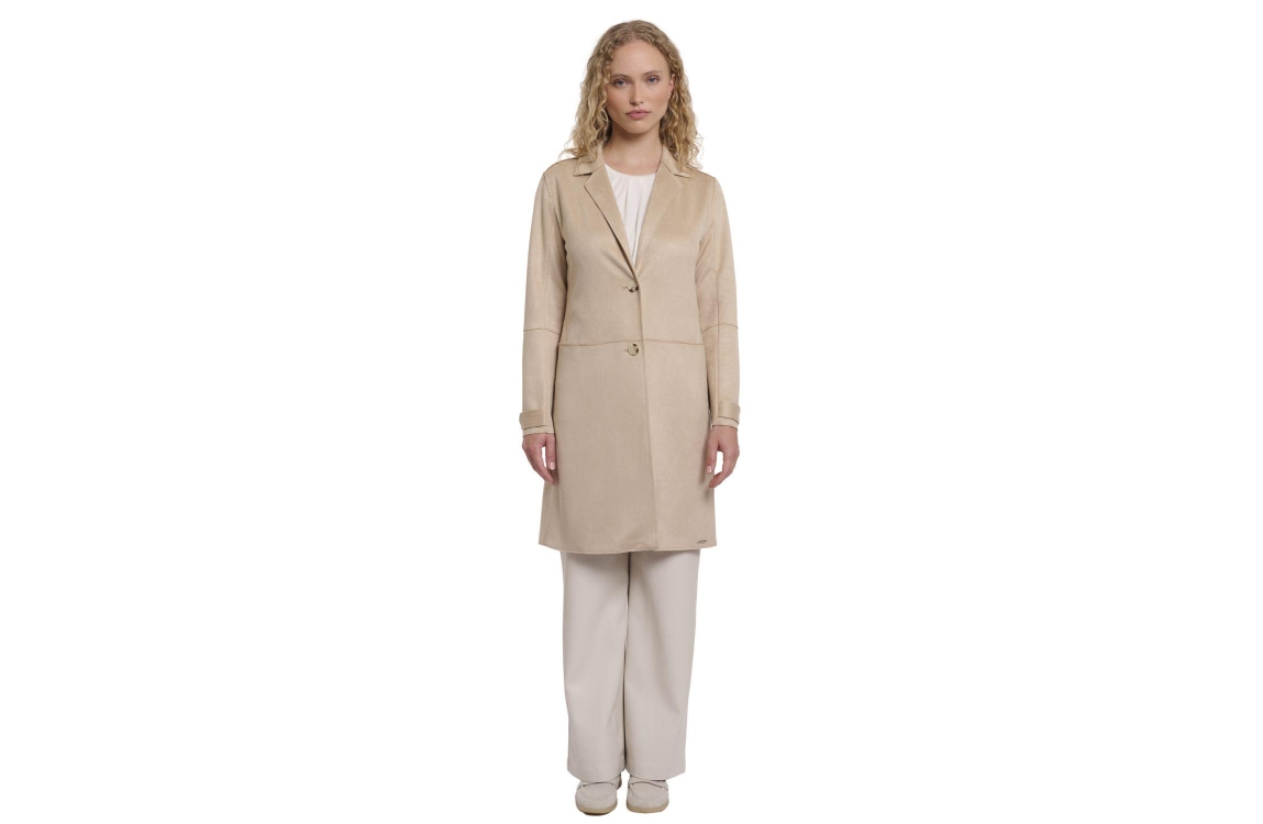Rino en Pelle Single breasted coat 10866 oat. Dit rechtvallende model heeft een reverskraag en lange mouwen. Deze beige jas van Rino & Pelle sluit aan de voorzijde door middel van knopen en is voorzien van twee schuine steekzakken aan de voorzijde. De manchetten van de jas zijn gedetailleerd met knopen.