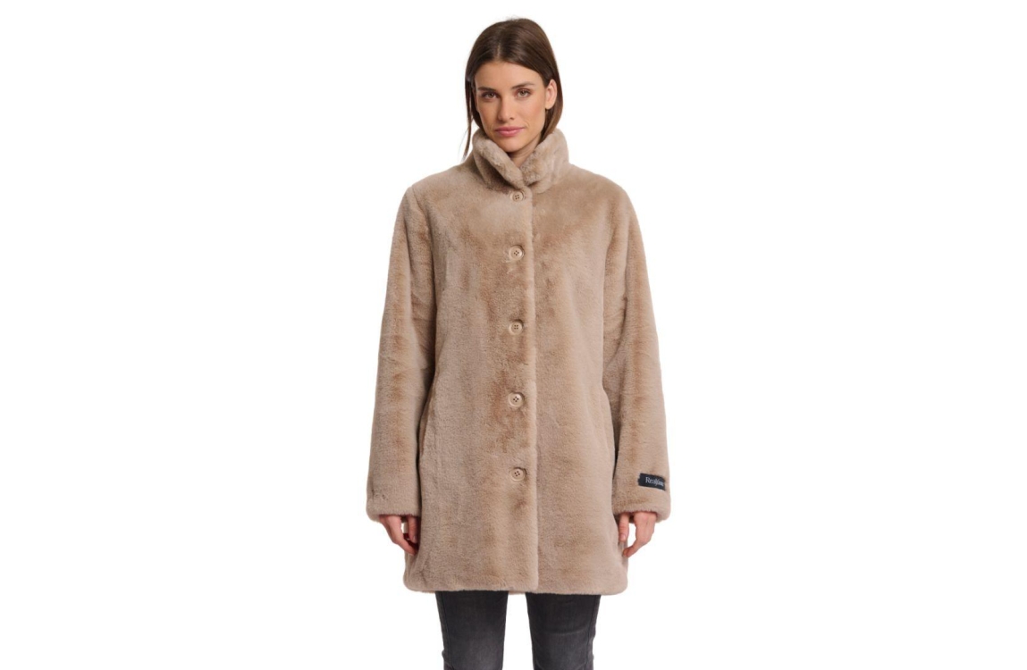 Rino en Pelle jas Nonna 7002511. Dit rechtvallend model heeft een kraag en lange mouwen. Deze beige jas van Rino en Pelle sluit aan de voorzijde door middel van knopen en is voorzien van twee steekzakken. Het model heeft een middellange lengte en is uitgevoerd in fake fur stof.