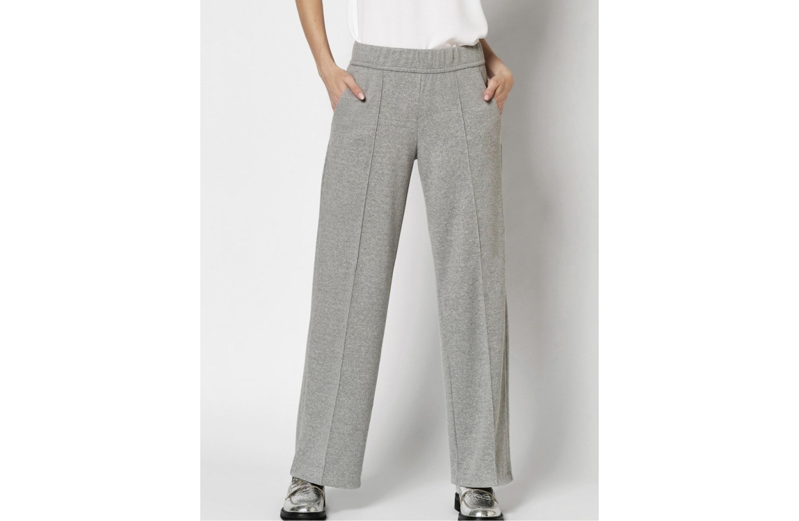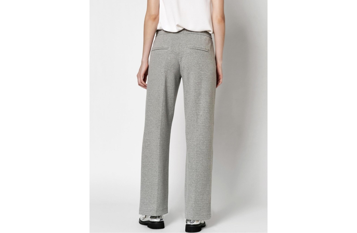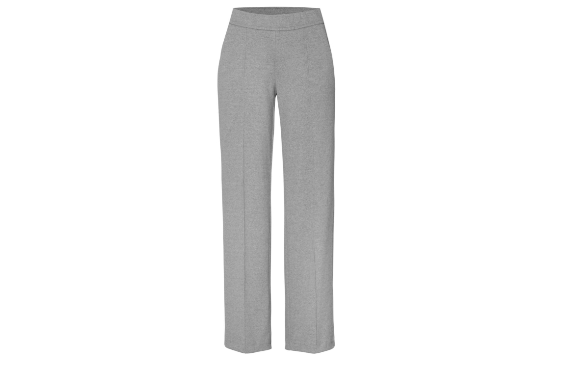 Rosner broek May 44274 730 722-10. Dit straight fit model sluit door middel van een elastische tailleboord en is uitgevoerd in stretch kwaliteit. Deze grijze broek van Rosner beschikt over twee steekzakken aan de voorzijde en twee paspelzakken aan de achterzijde en is afgewerkt met een plooitdetail over de lengte van de broek.