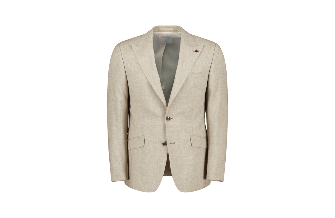 Rob Robson colbert D00040231185600 A250. Het slim fit model heeft een reverskraag en lange mouwen, gedetailleerd met manchetknopen. Dit lichtbruine colbert van Rob Robson sluit aan de voorzijde door middel van knopen en is voorzien van twee klepzakken en een borstzak.