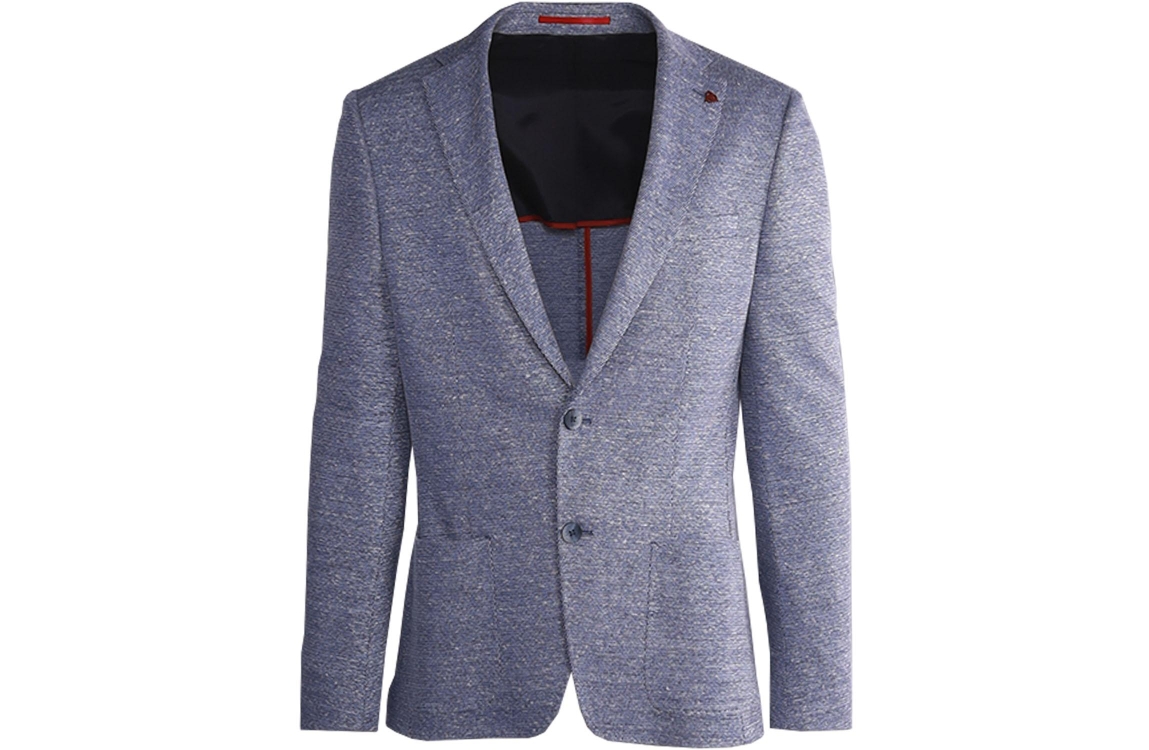 Roy Robson colbert 000025041253800. Dit regular fit model sluit aan de voorzijde met knopen, beschikt over een revers kraag en heeft lange mouwen afgewerkt met knopen. Dit blauwe gestipte colbert is voorzien van twee klepzakken aan de voorzijde, een borstzak en verschillende binnenzakken