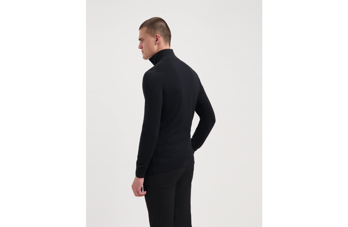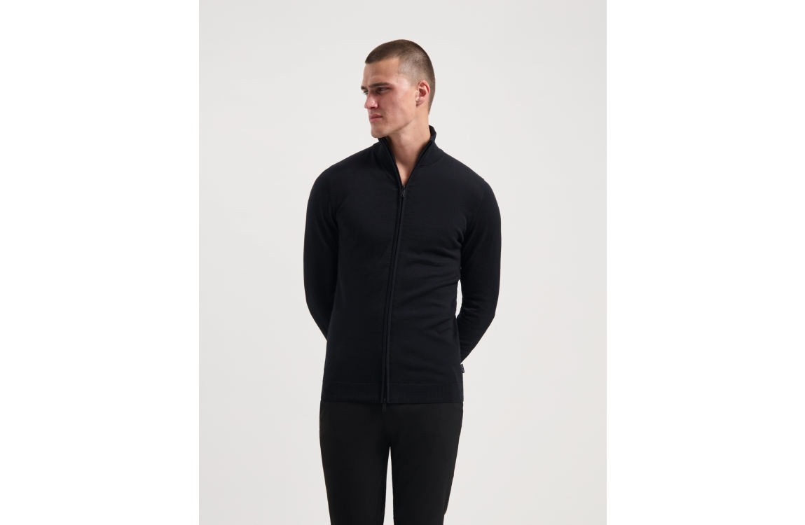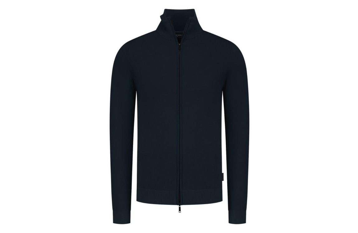 Saint Steve DIRK-S 70003 dark navy. Dit rechtvallende model is voorzien van een opstaande kraag en heeft lange mouwen. Dit donker blauwe vest van Saint Steve sluit aan de voorzijde door middel van een rits en is afgewerkt met ribboorden aan de onderzijde en mouwen.