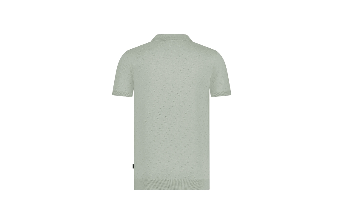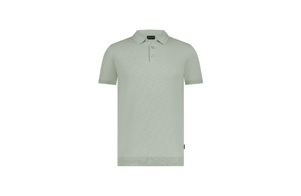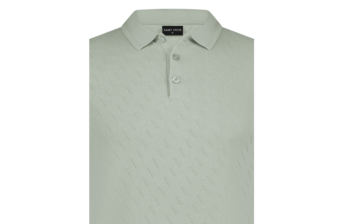 Saint Steve polo Teije 231228. Dit rechtvallend model is voorzien van een kraag en heeft korte mouwen. Deze groene polo van Saint Steve sluit aan de bovenzijde door middel van knopen en is all-over bewerkt met een structuur.
