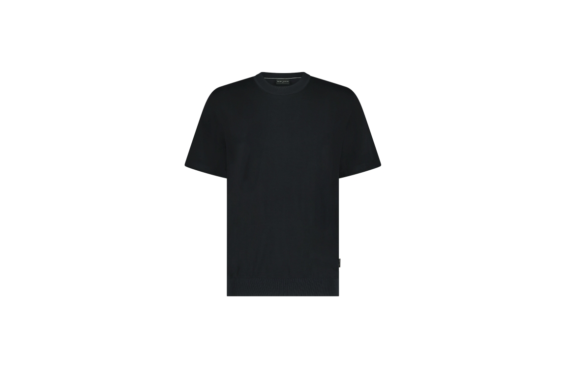 Saint Steve T-shirt Victor 231242. Dit rechtvallend model is voorzien van een ronde hals en heeft korte mouwen. Deze navy kleurige T-shirt van Saint Steve heeft aangesloten boorden.