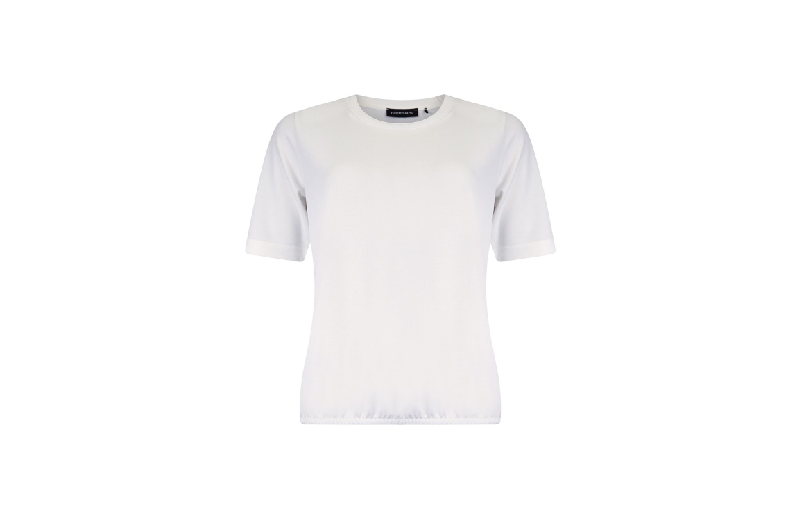Roberto Sarto t-shirt 611226. Dit soepelvallende model is voorzien van een ronde hals bewerkt met een motief en heeft korte mouwen. Dit witte t-shirt van Roberto Sarto is aan de onderzijde voorzien van een elastische boord.