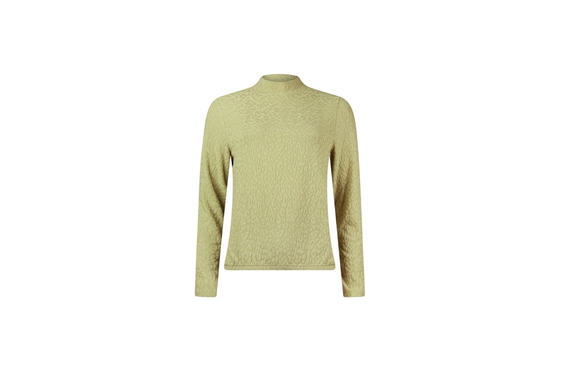 Roberto Sarto shirt 531137. Dit rechtvallende model heeft een turtleneck en lange mouwen. Deze lichtgroene shirt van Roberto Sarto is all-over bewerkt met een grafische structuur en is uitgevoerd in stretchkwaliteit. Het model heeft een elastische zoom.