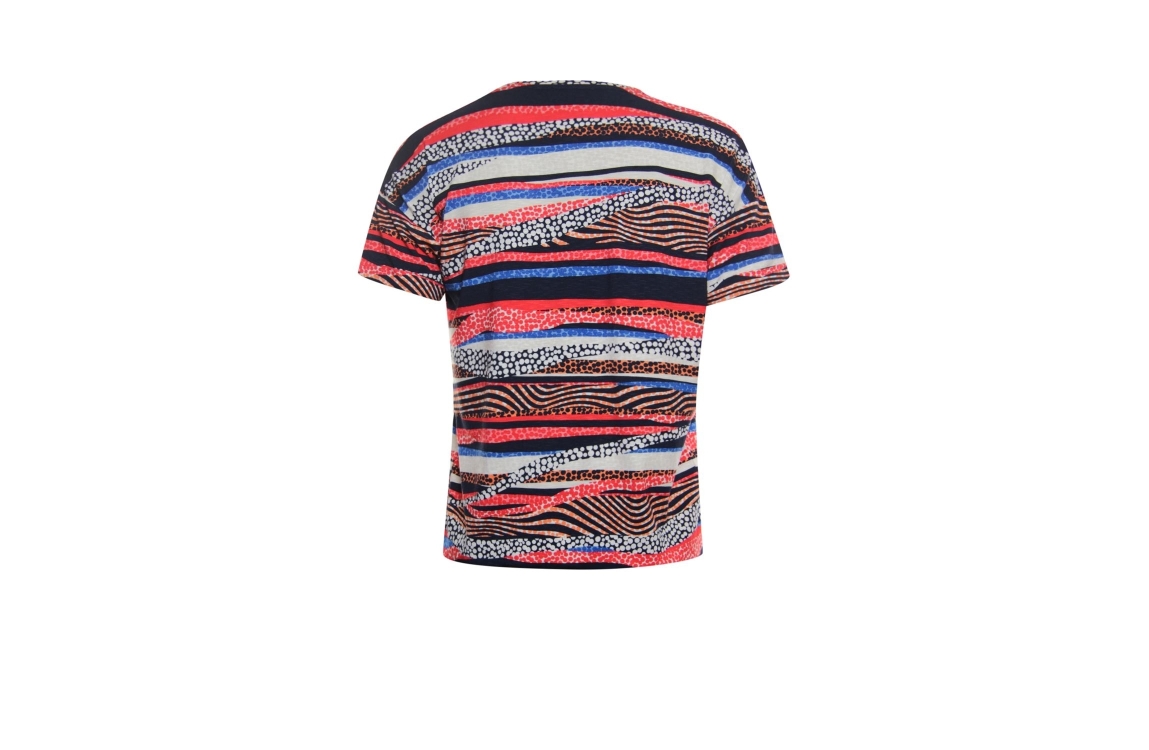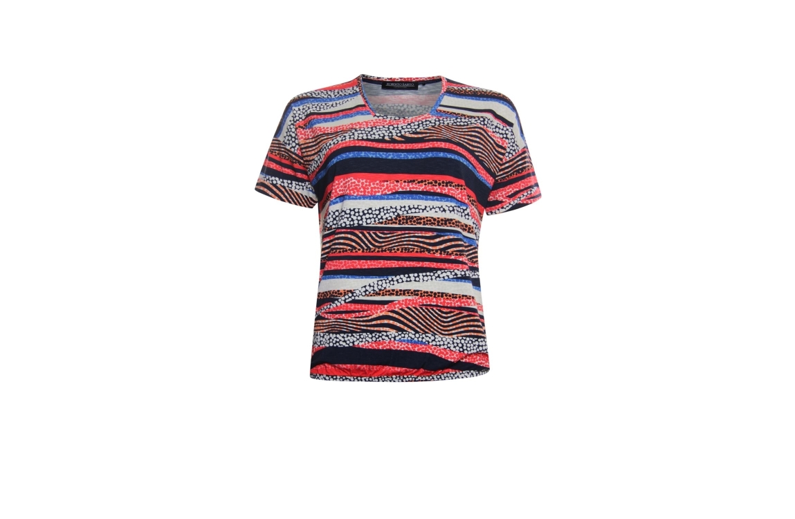 Roberto Sarto top 411172. Dit rechtvallend model heeft een ronde hals en korte mouwen. Deze multi-color top van Roberto Sarto heeft elastiek in de boord.