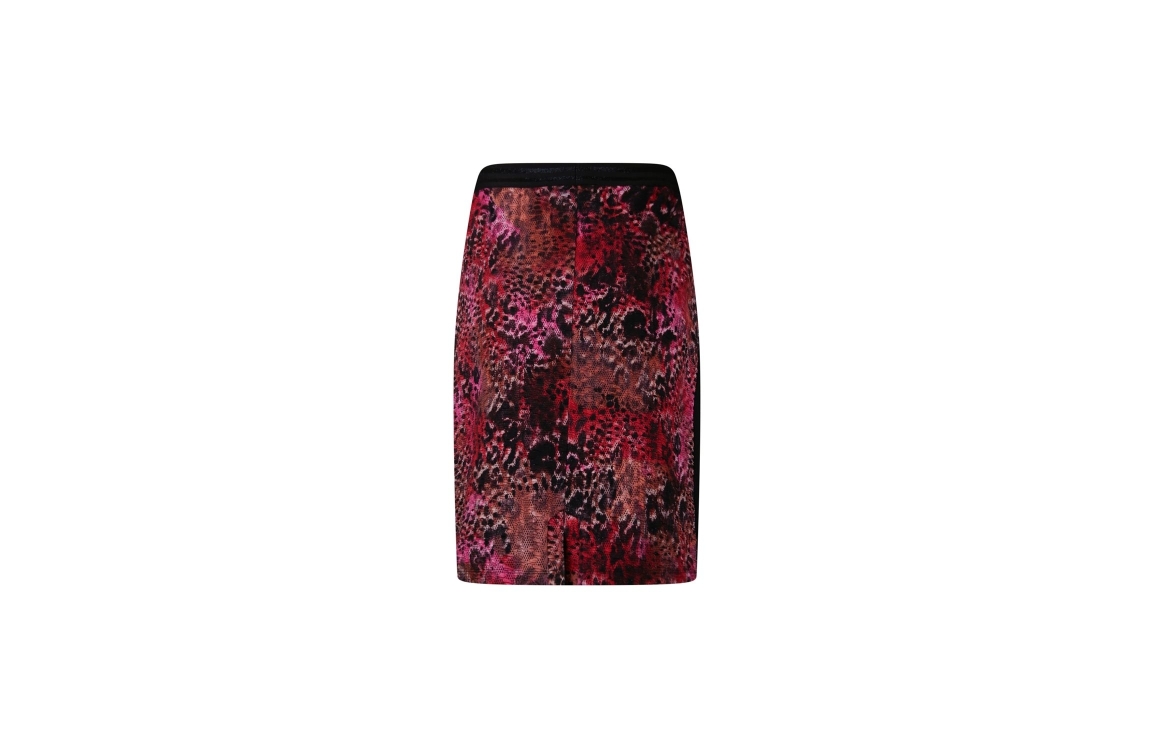 Roberto Sarto rok 531102. Dit regular fit model heeft een elastische boord, gedetailleerd met een glitterlurex. Deze zwarte rok van Roberto Sarto is all-over bewerkt met een grafische print in verschillende kleuren en is afgewerkt met een streepdetail aan de zijkant.