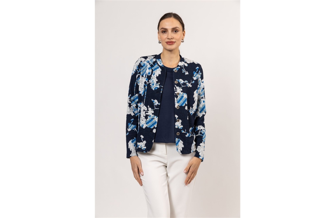 Sarto Fashion Jacket stand-up collar m1100 navy-white-cornflower+ flowerSarto Fashion Jacket stand-up collar m1100 navy-white-cornflower+ flowerSarto Fashion Jacket stand-up collar m1100 navy-white-cornflower+ flower