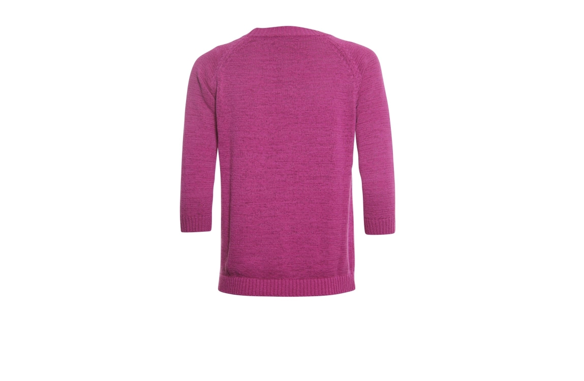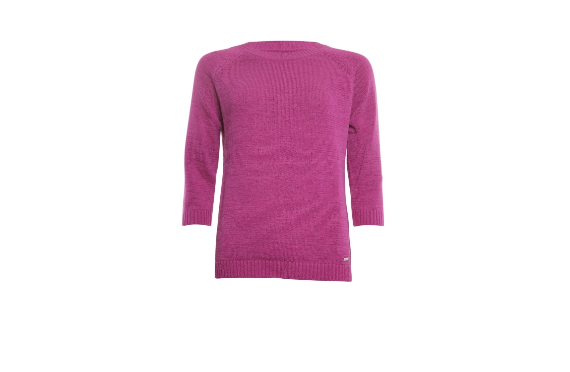 Roberto Sarto 411198. Dit rechtvallend model heeft een ronde hals en driekwart mouwen. Deze roze pullover van Roberto Sarto is uitgevoerd in een breisel en is afgewerkt met geribde boorden.