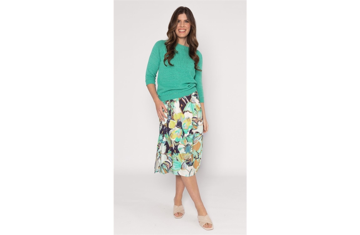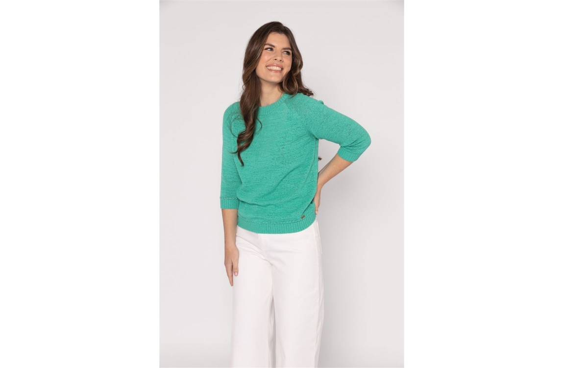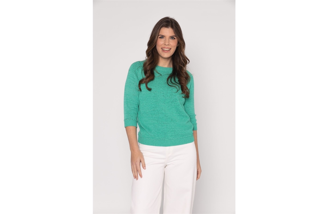 Roberto Sarto pullover 611198 683. Dit rechtvallende model heeft een ronde halslijn en driekwart mouwen. Deze lichtgroene pullover van Roberto Sarto heeft een comfortabele pasvorm en is afgewerkt met ribgebreide boorden.
