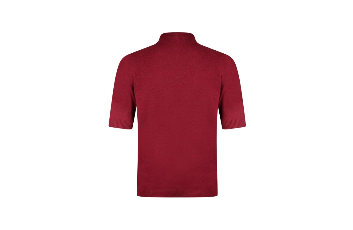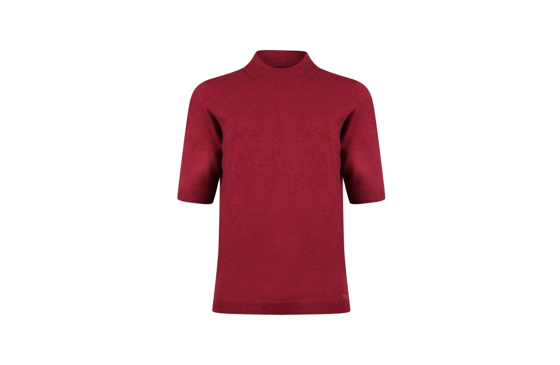 Roberto Sarto pullover 531254. Dit rechtvallende model heeft een turtleneck en korte mouwen. Deze donkerrode pullover van Roberto Sarto is all-over bewerkt met glitterlurex en is afgewerkt met ribgebreide boorden. Het model is uitgevoerd in stretchkwaliteit.