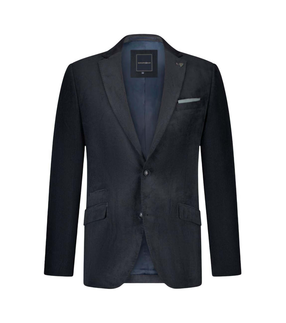 Scotland Blue colbert SPE253037HE30SB 290. Dit regular fit model heeft een reverskraag en lange mouwen. Deze donkerblauwe colbert van Scotland Blue sluit aan de voorzijde door middel van knopen en is voorzien van twee klepzakken en een borstzak. Het model is uitgevoerd in ribkwaliteit en heeft een afgewerkte manchetten.