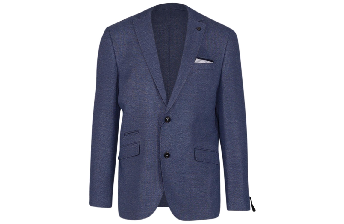 Scotland Blue colbert 251037he71sb. Dit regular fit model heeft een reverse kraag, lange mouwen en sluit door middel van knopen. Dit jeans blauwe colbert van Scotland Blue is voorzien van een gewoven sturctuur en heeft een steekzak op de voorkant. Dit model is afgewerkt met bruine knopen aan de onderzijde van de mouw.