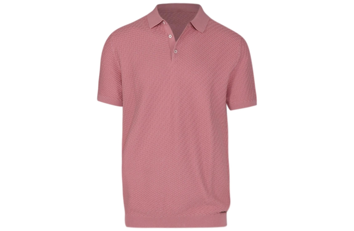 Scotland Blue polo kalvin pullover structure. Dit regular fit model heeft korte mouwen en een omgeslagen kraag. Deze snoep roze polo van Scotland Blue heeft een gebreide ribbel structuur en sluit door knopen.