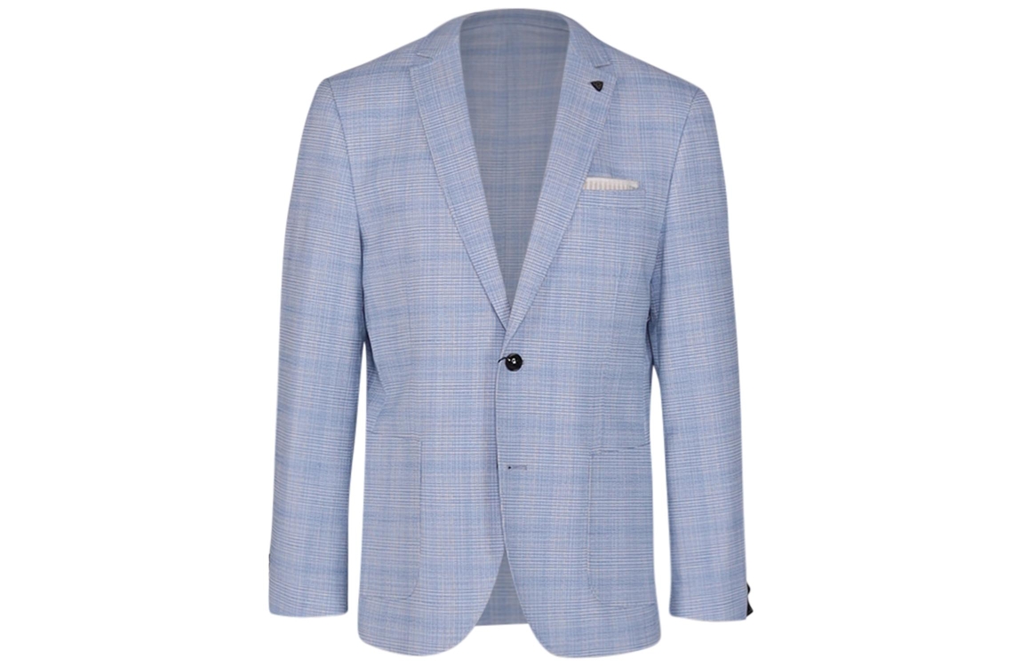 Scotland Blue colbert SPE251037LE74SB. Dit regular fit model sluit aan de voorzijde met twee knopen, beschikt over een omgevouwen kraag en heeft lange mouwen. Deze blauw/wit kleurige colbert van Scotland Blue is voorzien van twee zakken en een paspelzak aan de voorzijde, een borstzakje en drie binnenzakken. Er zit een speldje op de linkerzijde van de kraag.