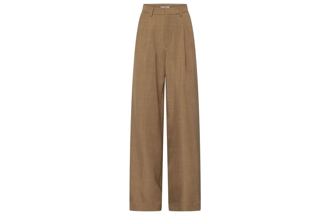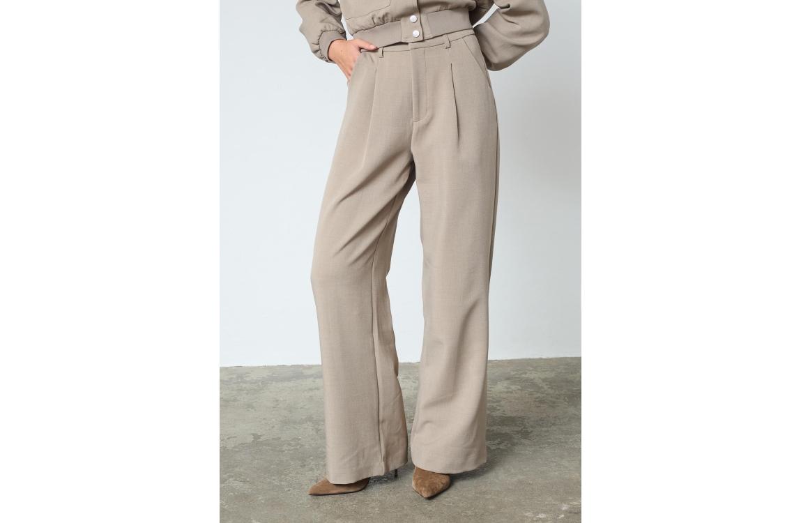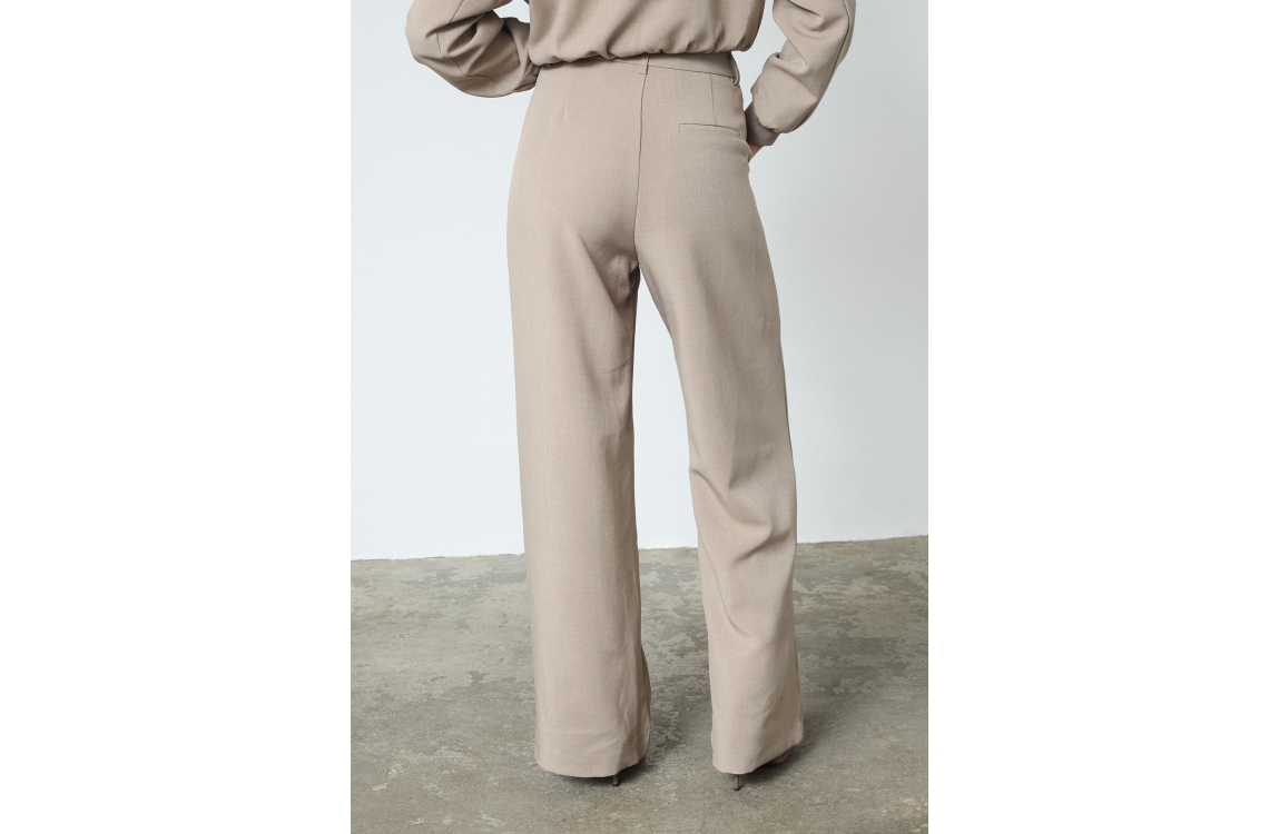 Sisters Point Pants 205 Sand. Dit wide leg model sluit door middel van een haak- en oogsluiting en een rits. Deze beige broek van Sisters Point is voorzien van plooien aan de voorzijde en zijzakken.