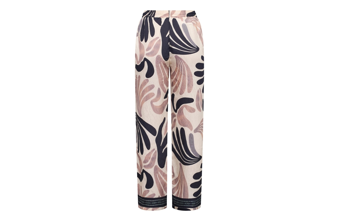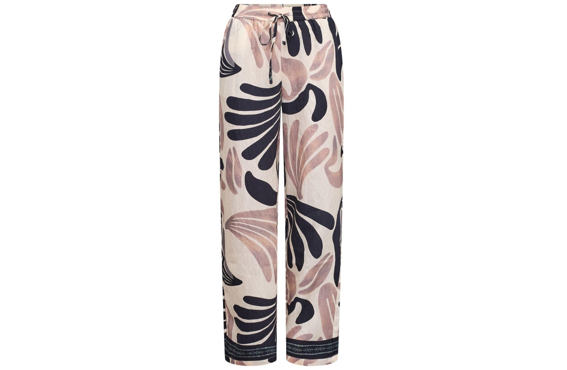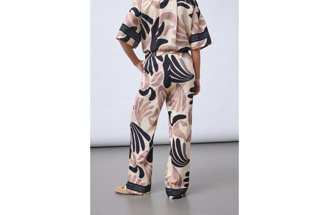 Sisters Point Pants 801 Border. Dit soepelvallende model sluit door middel van een elastische boord met trekkoord. Deze multicolour broek van Sisters Point is voorzien van twee steekzakken en is all-over bewerkt met een abstract patroon in beige, zwart en lichtroze tinten.