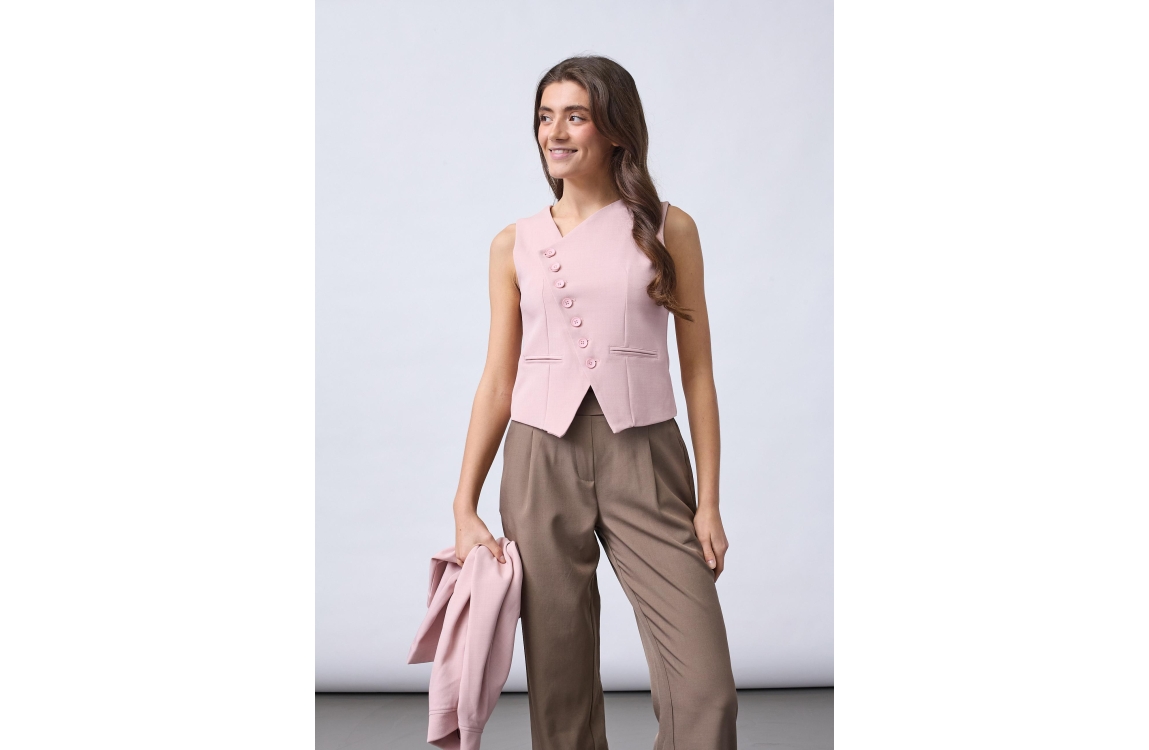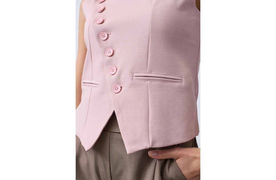 Sisters Point Vest Mauve. Dit rechtvallende model is voorzien van een ronde hals en is mouwloos. Dit roze gilet van Sisters Point sluit door middel van knopen aan de voorzijde.