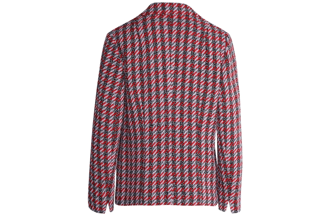 Sommermann blazer Amsterdam 7570-11. Dit rechtvallend model heeft een reverskraag en lange mouwen. Deze rode blazer van Sommermann sluit aan de voorzijde door middel van knopen en heeft een all-over ruitpatroon in verschillende kleuren. Dit model beschikt over twee opgestikte zakken aan de voorzijde.