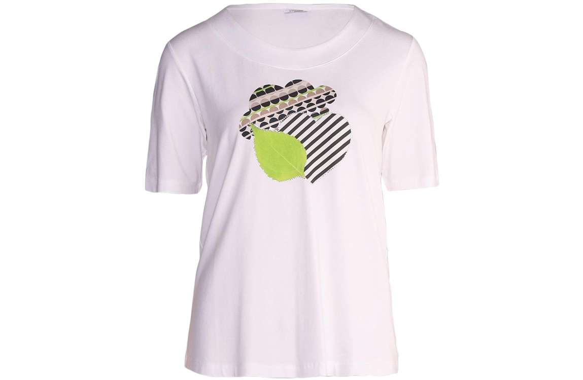 Sommermann T-shirt Silke 5564-31. Dit rechtvallend model heeft korte mouwen en een diepe ronde hals. Deze witte T-shirt van Sommermann is aan de voorzijde bewerkt met een opdruk in verschillende kleuren. Dit model bevat veel stretch en is afgewerkt met boorden.