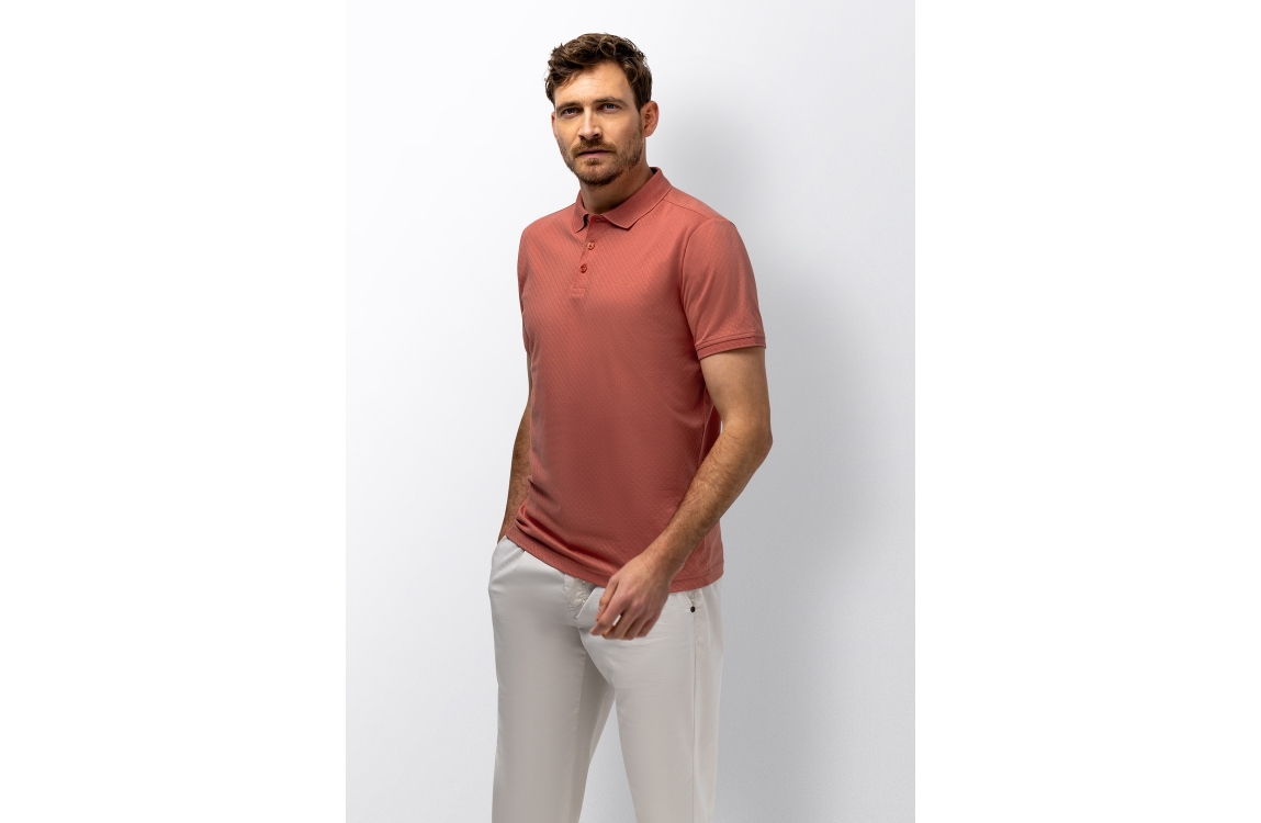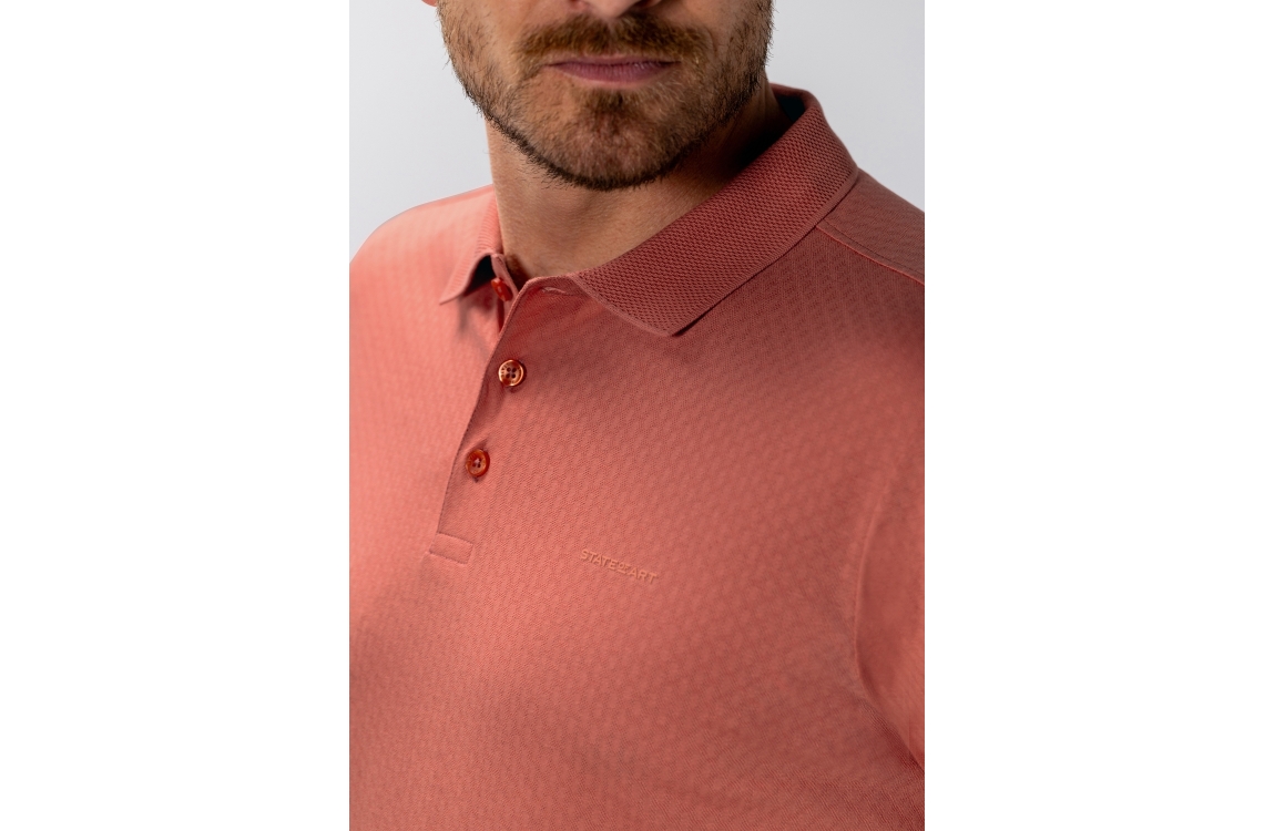 State of Art poloshirt 46116423. Dit rechtvallende model heeft een kraag met knoopsluitingen en korte mouwen. Deze oud roze poloshirt van State of Art is all-over bewerkt met een structuur en is op de linkerborst gedetailleerd met het merkembleem.