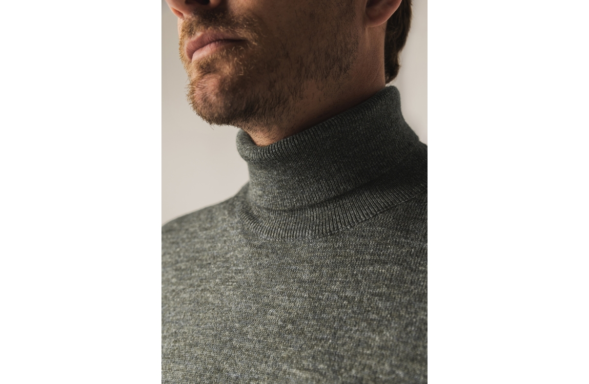 State of Art pullover 15125063 5688. Dit rechtvallende model heeft een omgeslagen col en lange mouwen. Deze grijze pullover van State of Art is uitgevoerd in een fijn breisel met grijze, bruine en blauwe draden. Het model is gedetailleerd met het merkembleem op de linkermouw en is afgewerkt met ribgebreide boorden.
