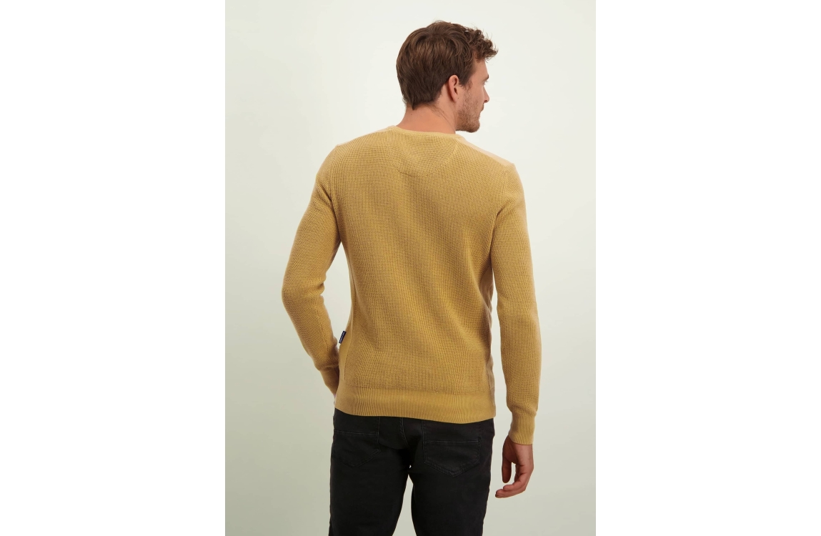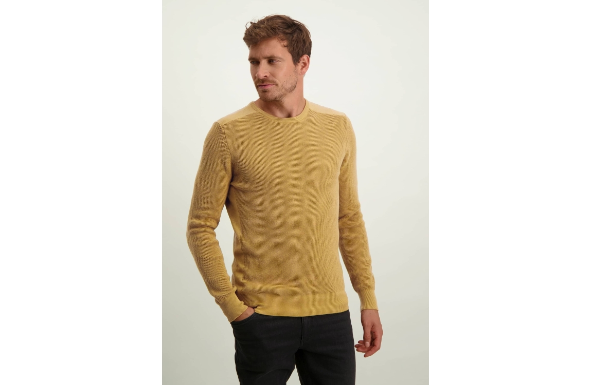 State of Art pullover 111-23010-2300. Dit rechtvallend model is voorzien van een ronde hals en heeft lange mouwen. Deze oker gele pullover van State of Art is gestructureerd bewerkt en is bij de schouder en aan de zijkanten gribd uitgevoerd. Dit model is afgewerkt met boorden.