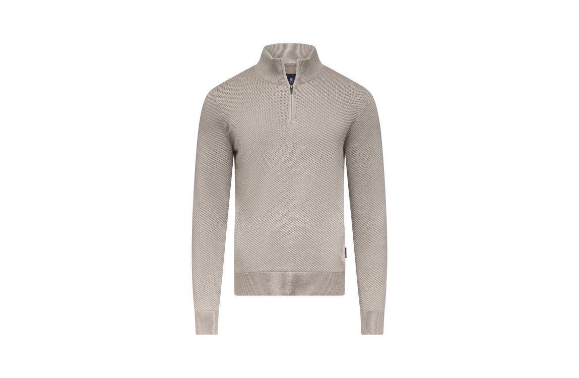State of Art Pullover Sportzip FA 13525100. Dit rechtvallende model heeft een opstaande kraag met rits en lang en mouwen. Deze kit kleurige pullover van State of Art is gedetailleerd met afgewerkte boorden.