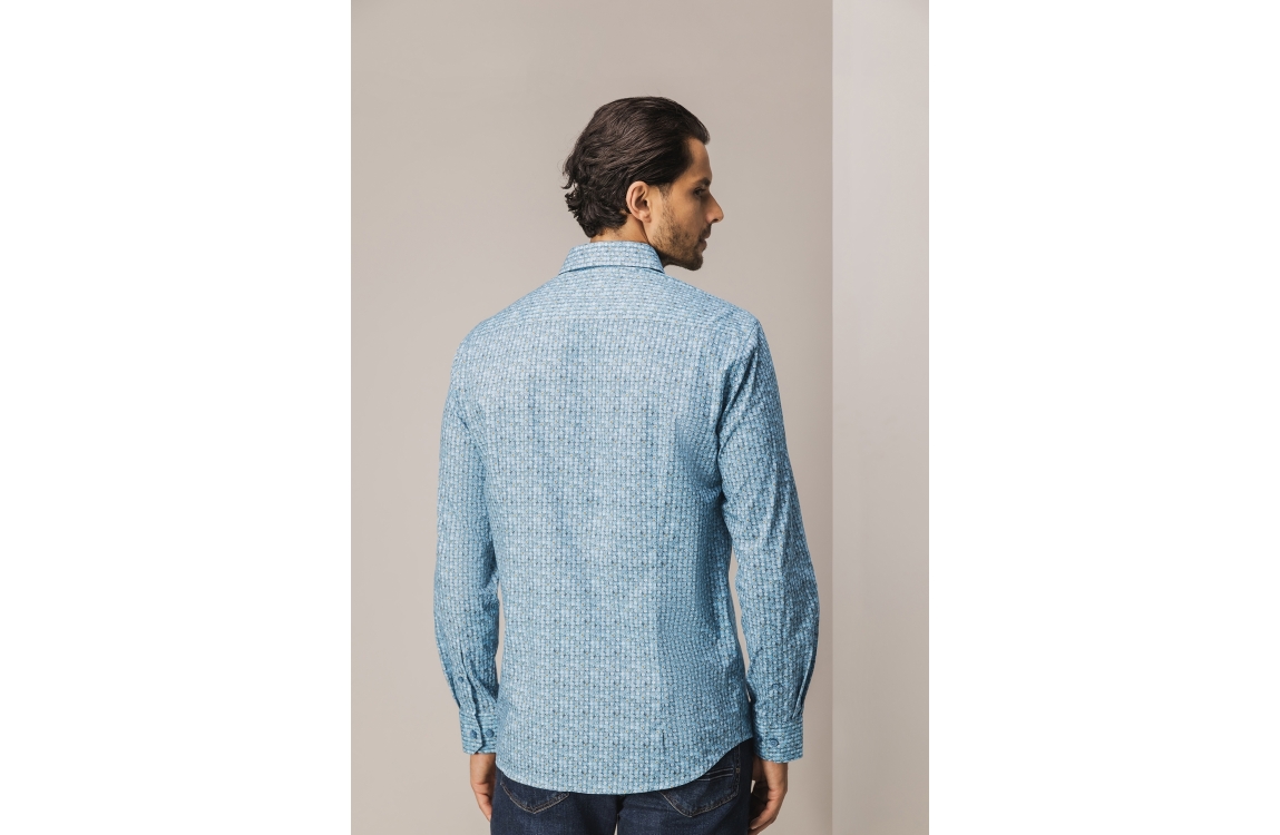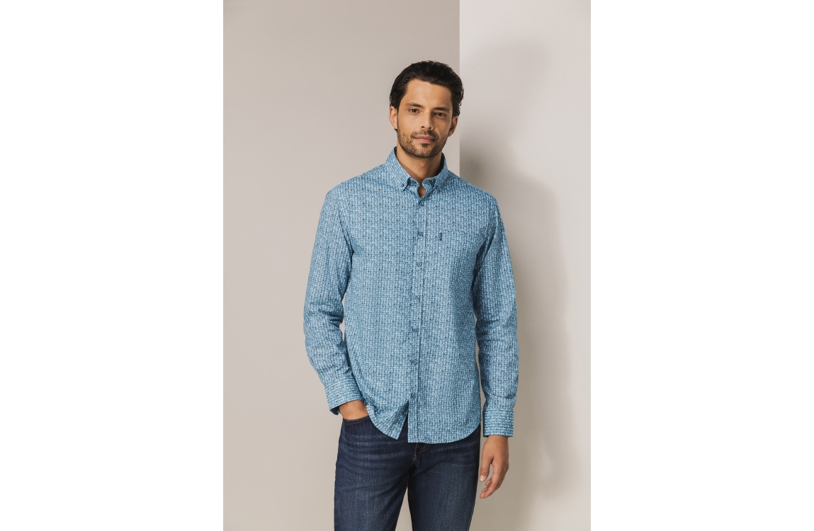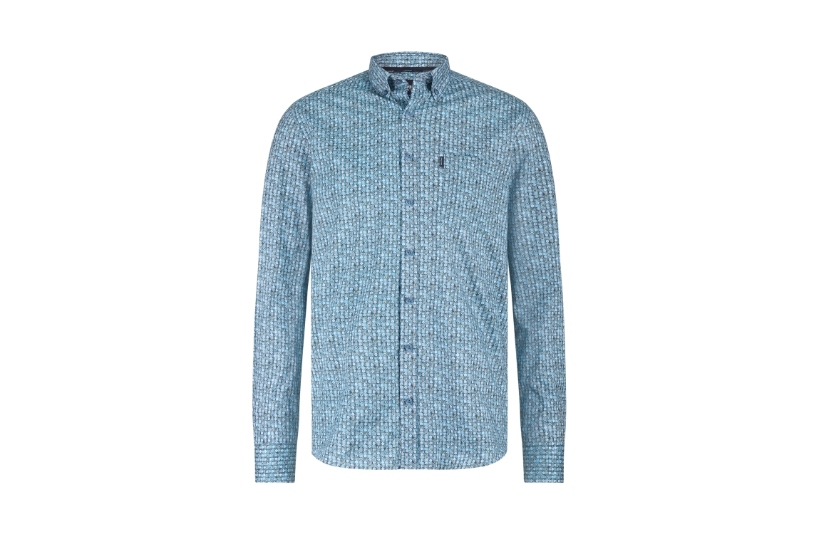 State of Art Shirt LS Print - Pop 5611 Grijsblauw. Dit rechtvallende model is voorzien van een button-down kraag en sluit door middel van knopen. Dit grijs/blauwe overhemd van State of Art heeft lange mouwen afgewerkt met knopen en is bewerkt met een all-over print.