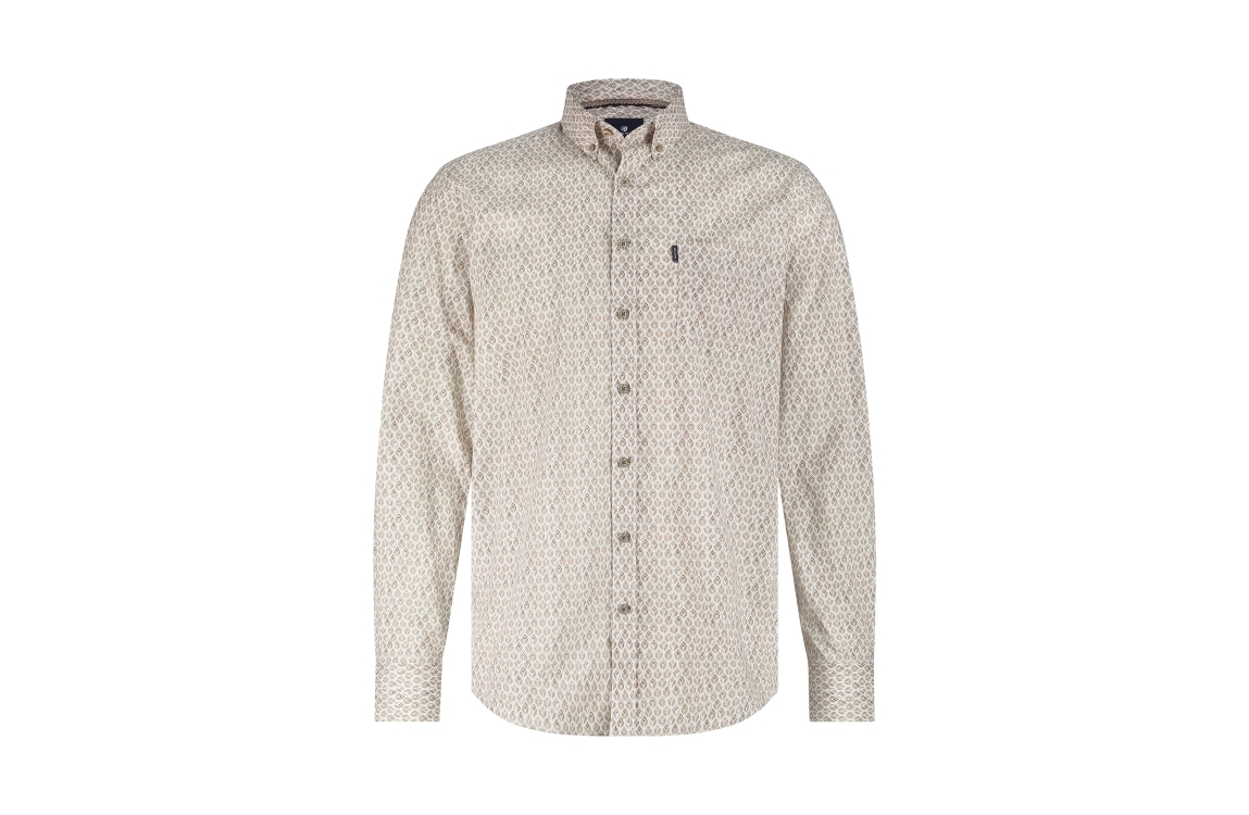 State of Art Shirt LS Print 21425256. Dit rechtvallende model is voorzien van een kraag en heeft lange mouwen. Dit cognac kleurige overhemd van State of Art heeft een all over print is afgewerkt met een borstzak. Dit model sluit aan de voorzijde door middel van knopen.