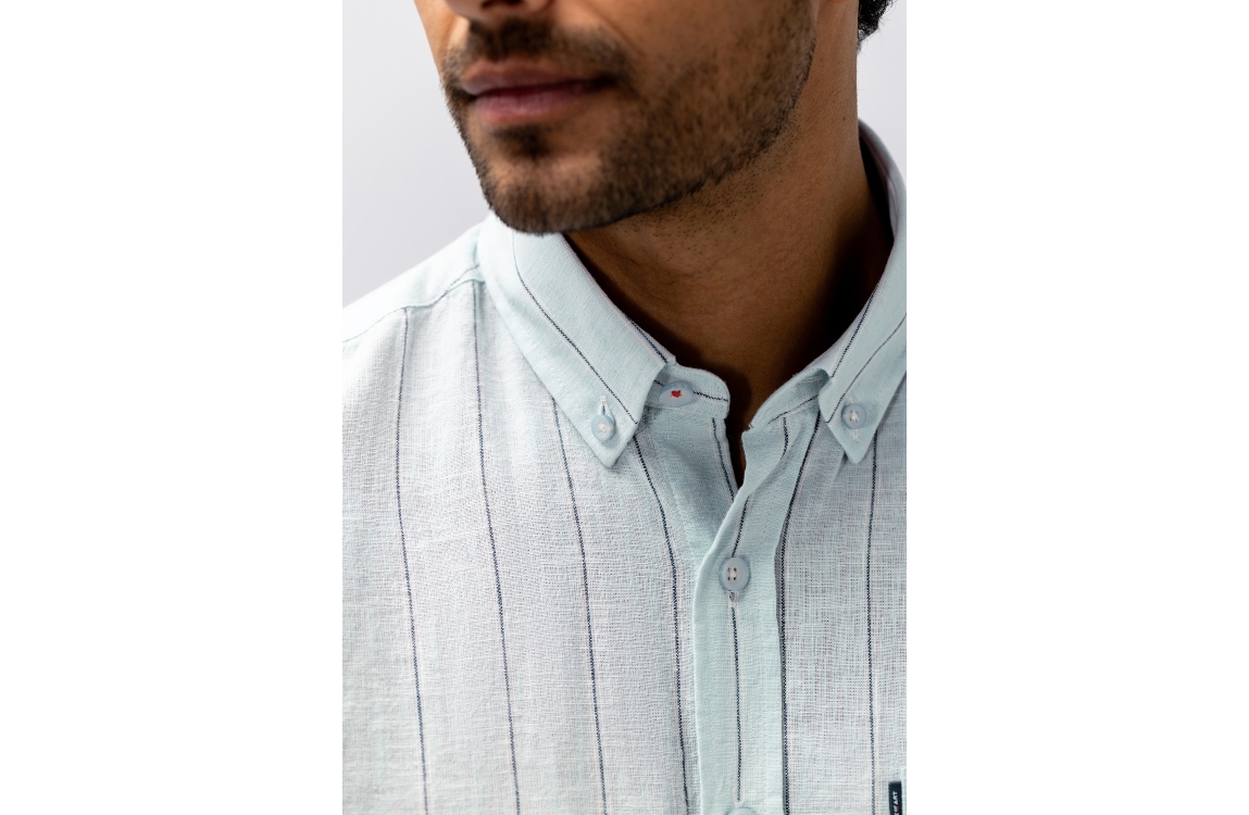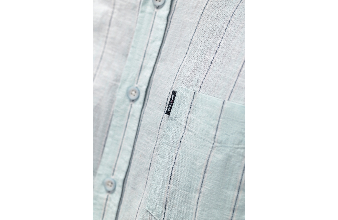 State of Art overhemd 21216160. Dit rechtvallend model heeft een kraag, lange mouwen en sluit door middel van knopen. Dit lichtblauwe overhemd van State of Art is bewerkt met verticale strepen en voorzien van een borstzakje.