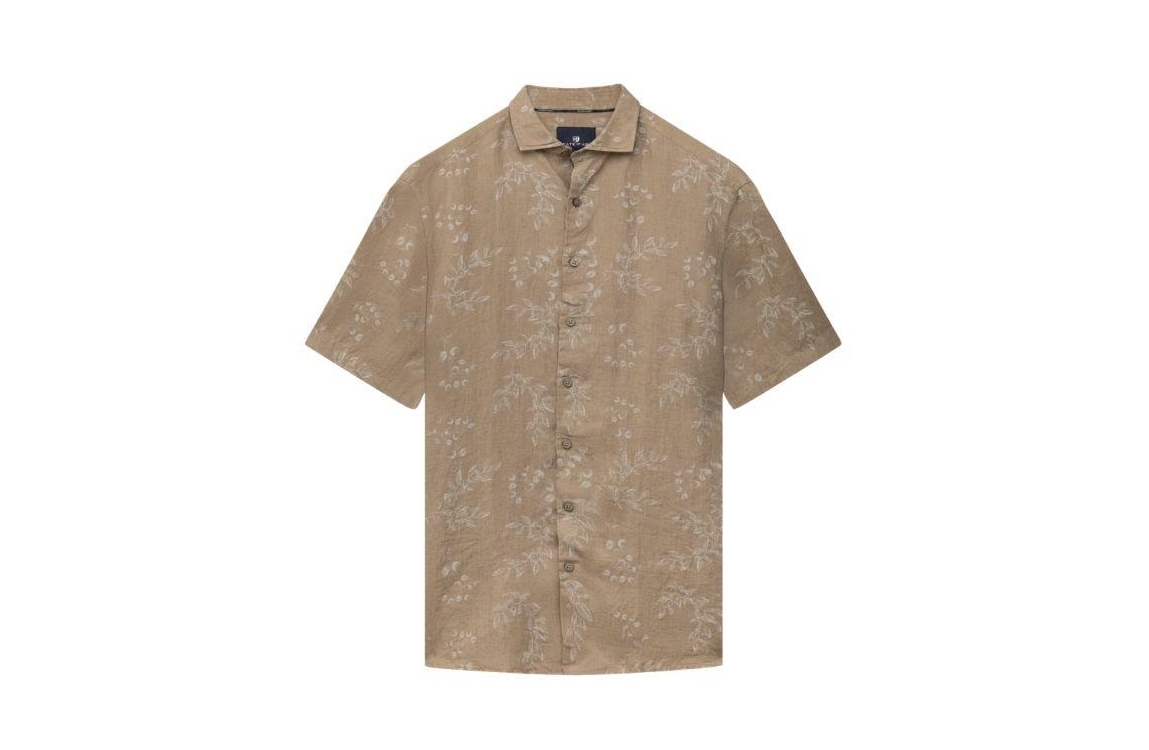 State of Art overhemd 26416327 1612. Dit rechtvallende model heeft een kraag en korte mouwen. Deze beige overhemd van State of Art sluit aan de voorzijde door middel van knopen en is all-over bewerkt met een grafische print.