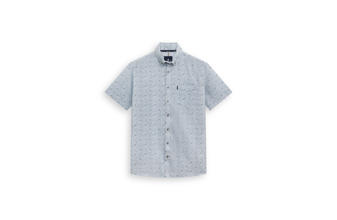 State of Art overhemd 26416267 5258. Het regular fit model heeft een kraag en korte mouwen. Dit mintblauwe overhemd van State of Art sluit aan de voorzijde door middel van knopen en is all-over bewerkt met een grafische print. Het model is voorzien van een borstzak.