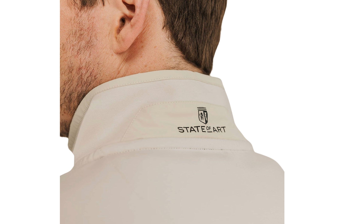State of Art sweat cardigan plain. Dit aangesloten model heeft een opstaande kraag en sluit doormiddel van een rits. Dit kit vest van State of Art heeft lange mouwen met op de linker een zakje achter een rits. Verder beschikt dit vest over 2 steekzakken achter een rits en een merkembleem op de linker borst en dit vest is afgewerkt met een elastische rib boord.