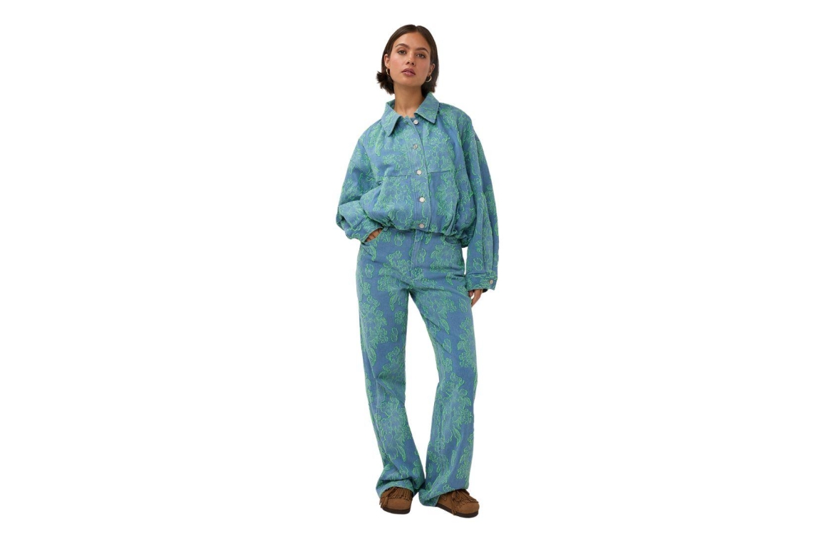 Studio Amaya broek Anna 261-ST2 303 Lime. Dit wide fit model sluit door middel van een knoop- en ritssluiting en is voorzien van ceintuurlussen. Deze denim broek van Studio Amaya is all-over bewerkt met lichtgroene bloemenborduursels en uitgevoerd in een 5-pocket model.