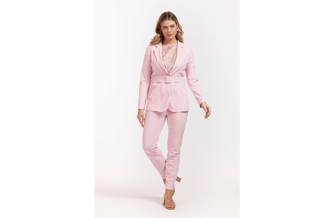 Studio Anneloes Jade bonded buckle blazer 11081. Dit aansluitende model is voorzien van een reverskraag en sluit door middel van een knoop en ceintuur. Dit roze blazer van Studio Anneloes beschikt is uitgevoerd in travel stof. Dit item valt wat langer.
