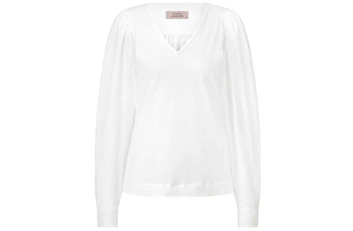 Studio Anneloes les top 12519. Dit rechtvallend model is voorzien van een v-hals en heeft lange mouwen. Deze witte top van Studio Anneloes is uitgevoerd in een travel kwaliteit.