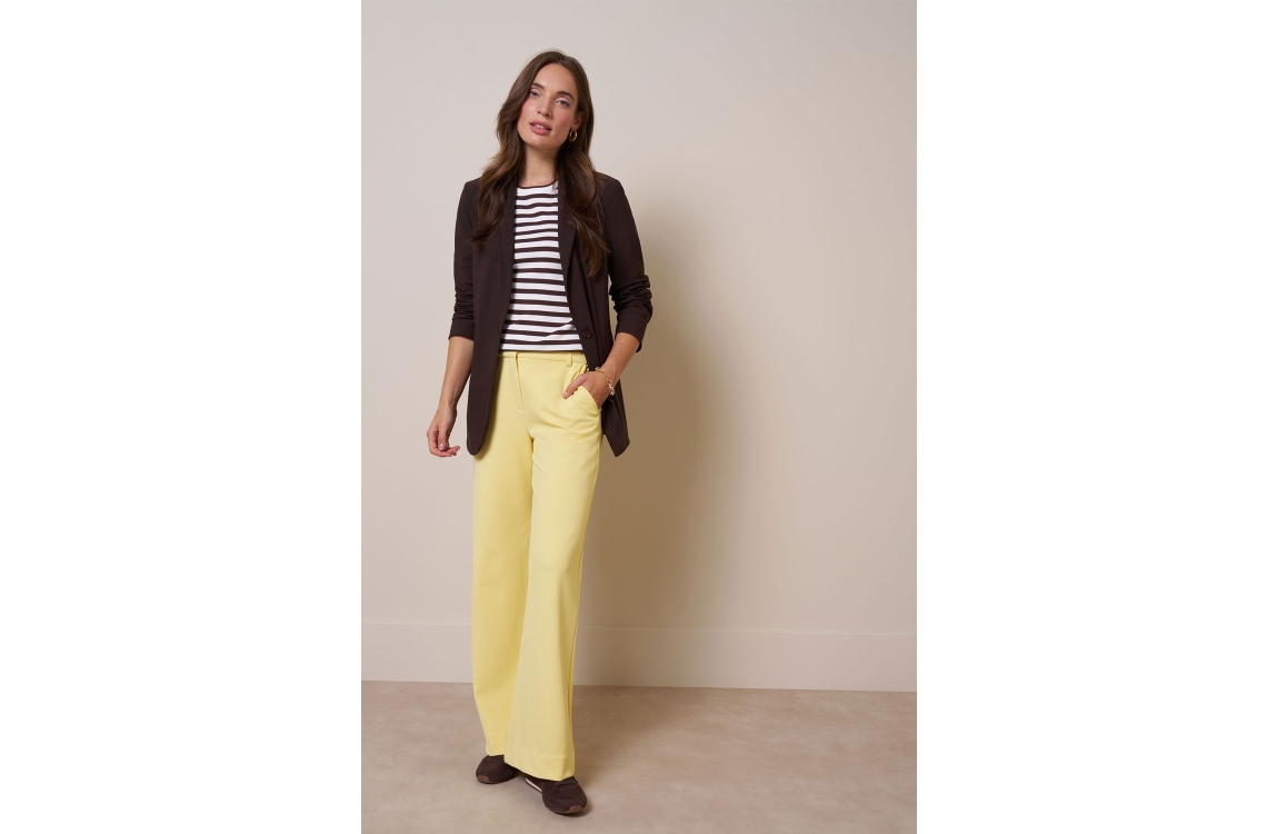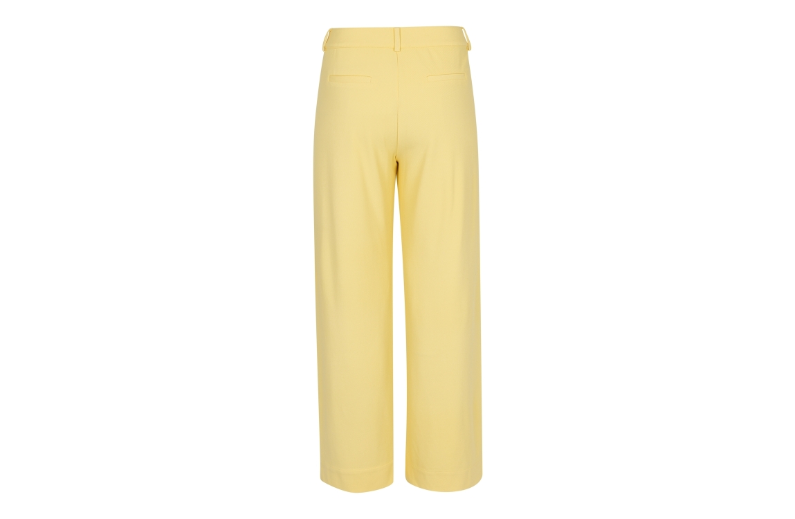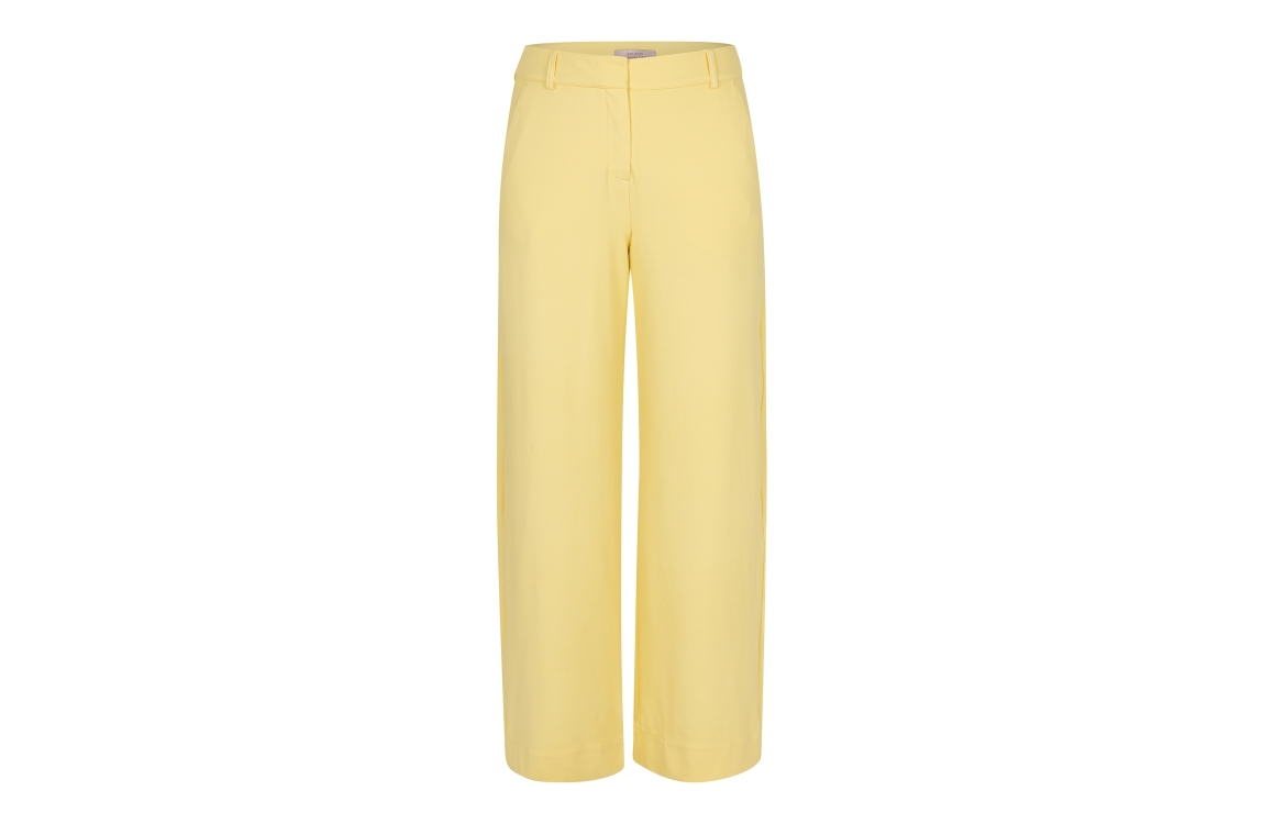 Studio Anneloes Luz Twill trousers 13426. Dit wide fit model sluit door middel van een knoop en rits afgewerkt met ceintuurlussen. Deze butter yellow broek van Studio Anneloes beschikt over twee steekzakken aan de voorzijde en twee paspelzakken aan de achterzijde.