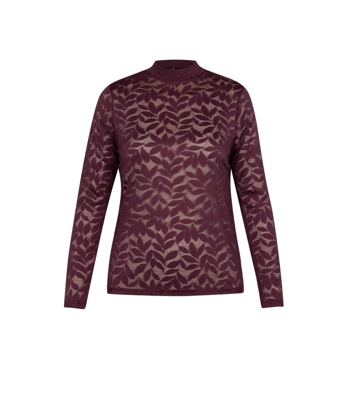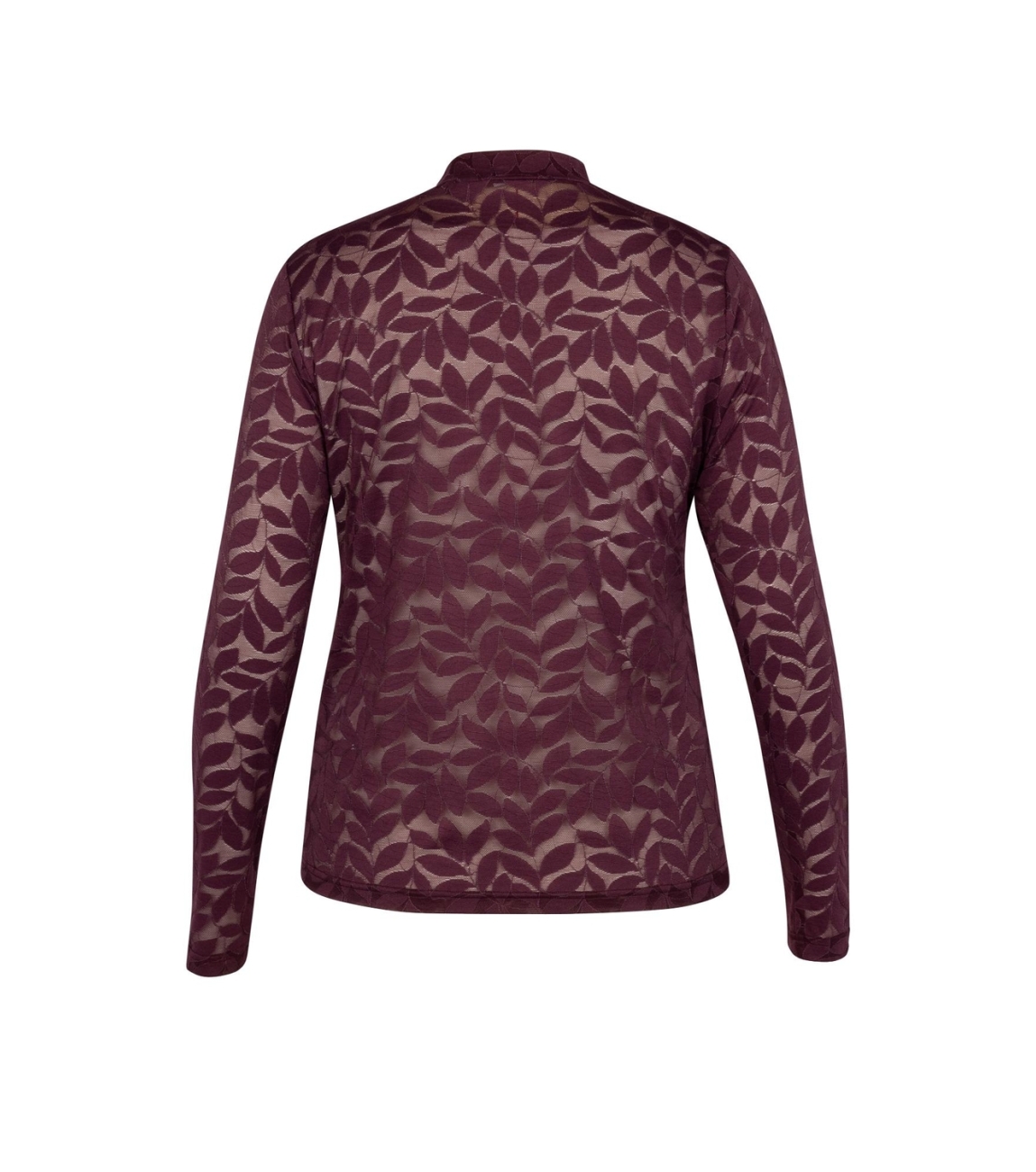 Studio Anneloes top Reagan lace 13362. Dit aangesloten model is voorzien van een turtle neck en heeft lange mouwen. Deze donkerrode top is bewerkt met kant.